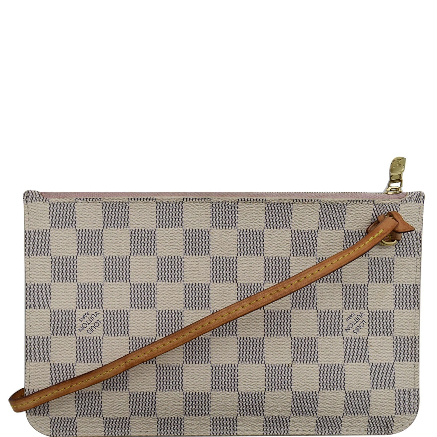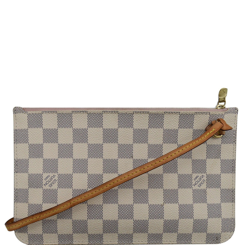 Neverfull MM Damier Azur Pochette Wristlet Pouch Rose Ballerine