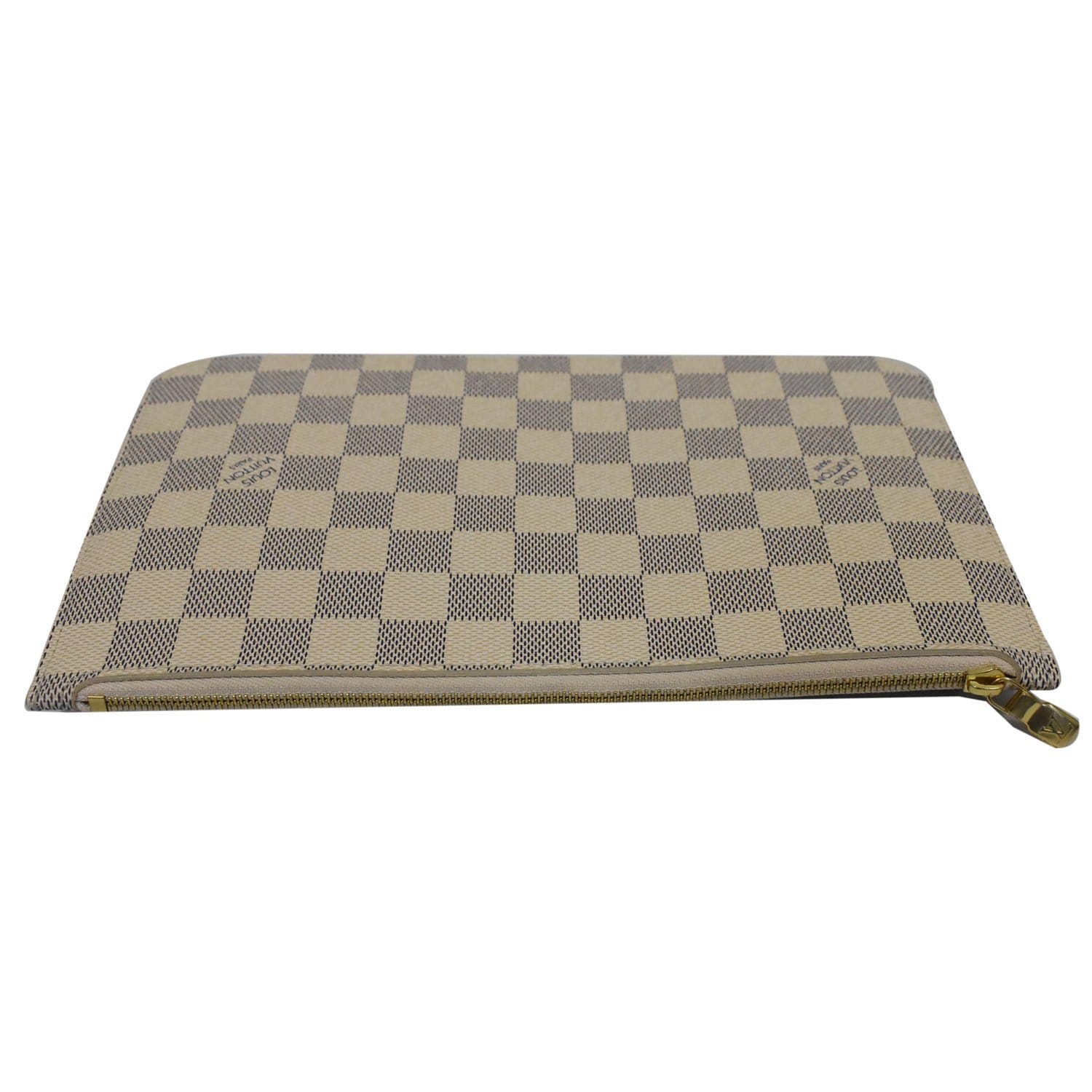 Neverfull MM Damier Azur Pochette Wristlet Pouch White