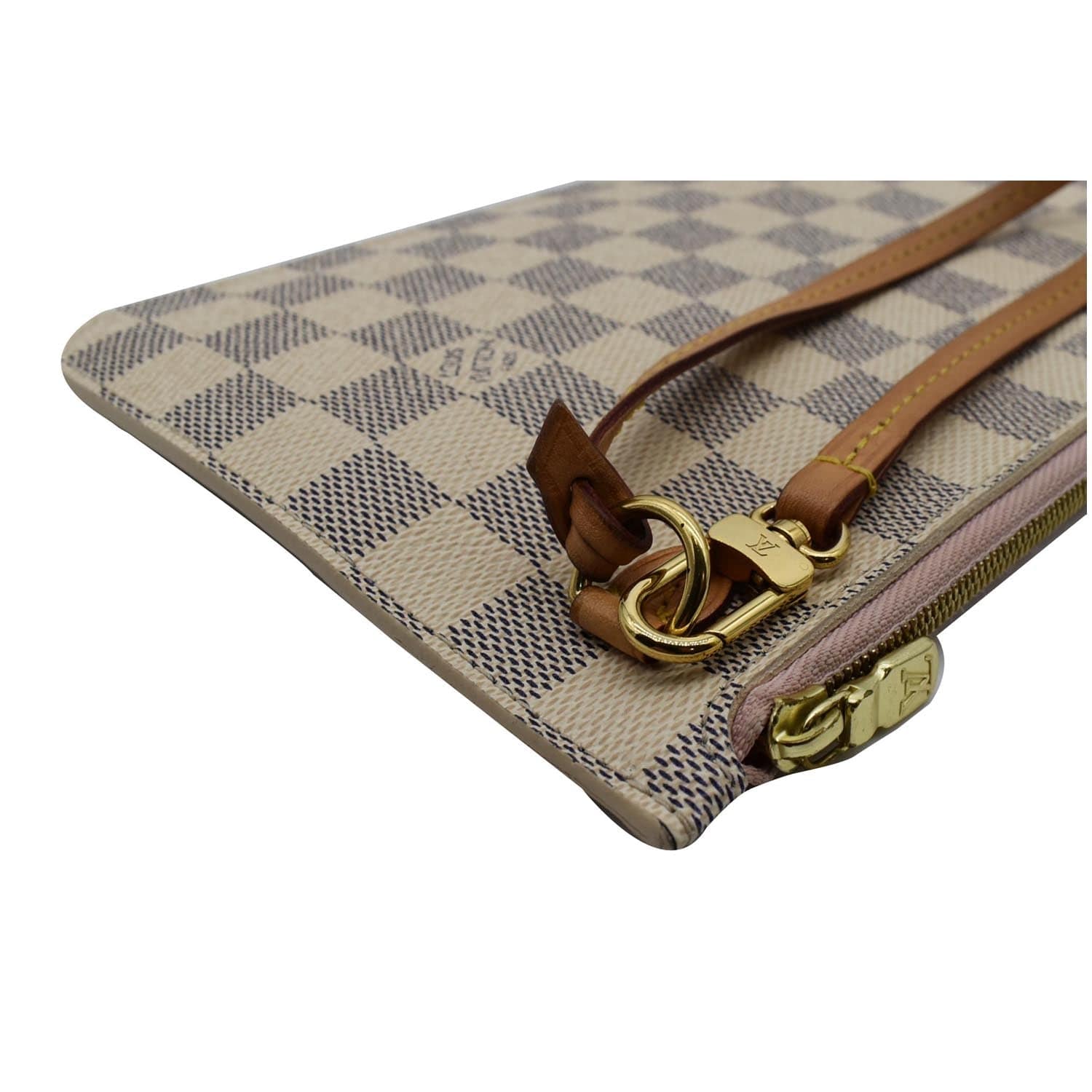 Neverfull MM Damier Azur Pochette Wristlet Pouch White