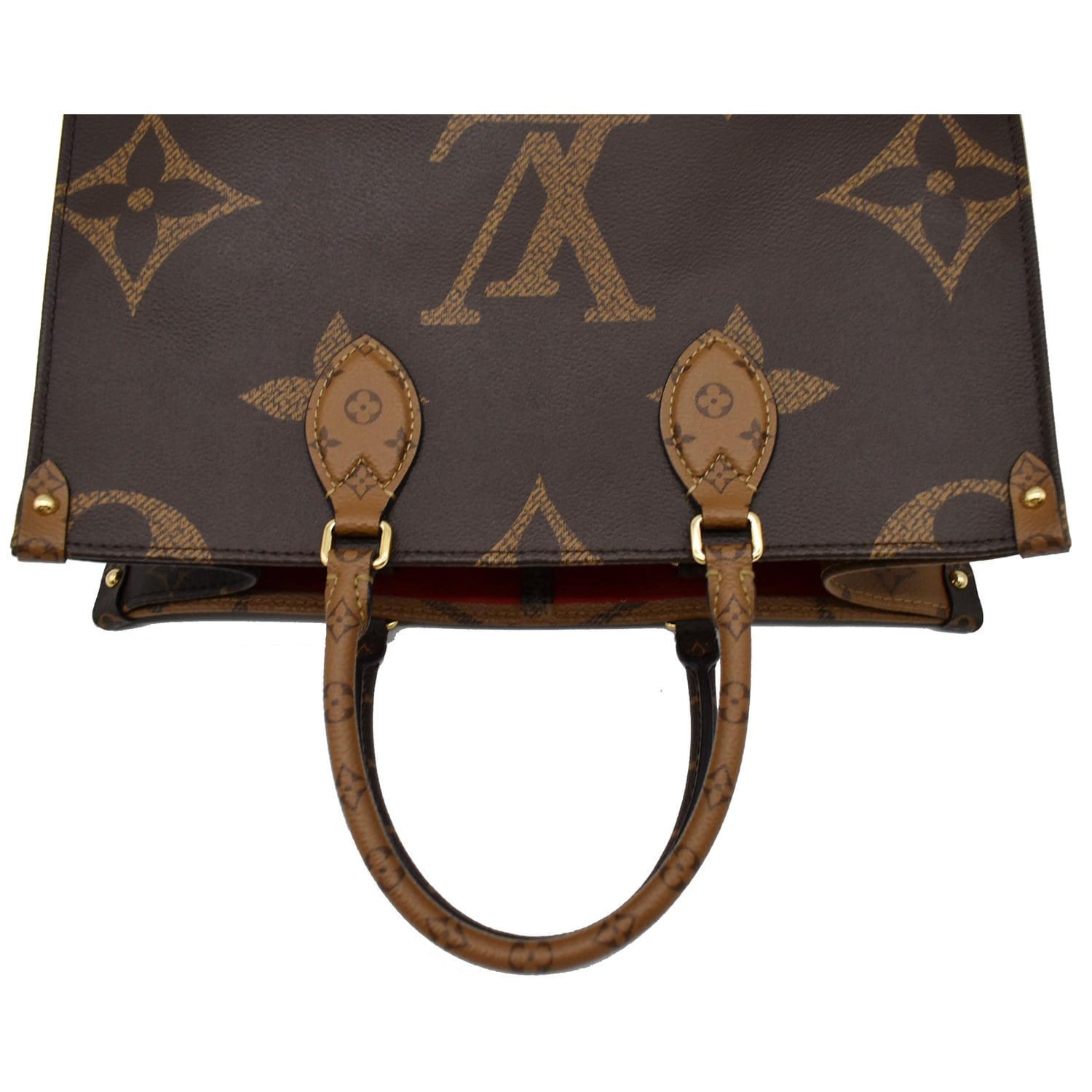 Onthego MM Giant Monogram Canvas Tote Shoulder Bag Brown