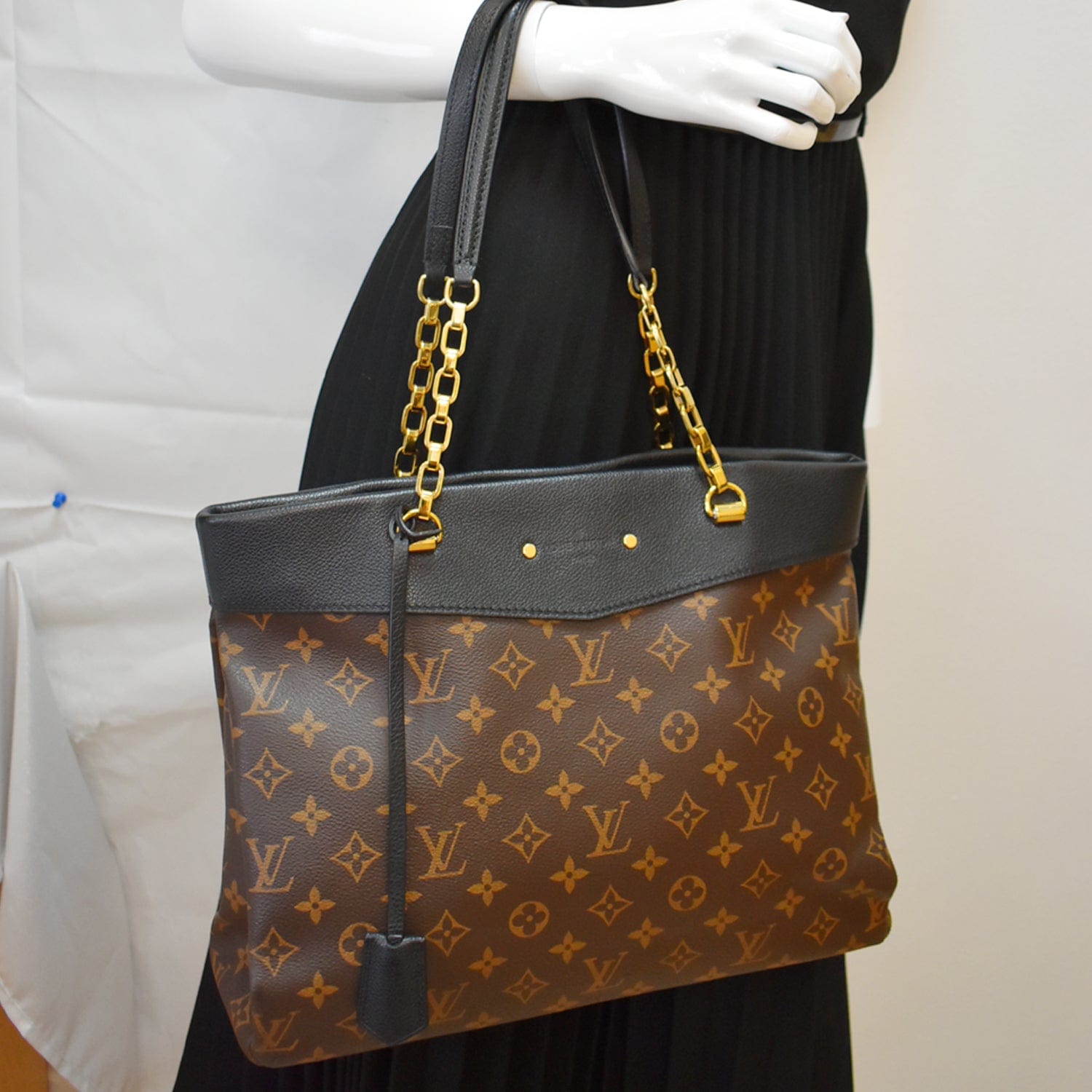 Pallas Chain Monogram Canvas Shopper Bag Brown