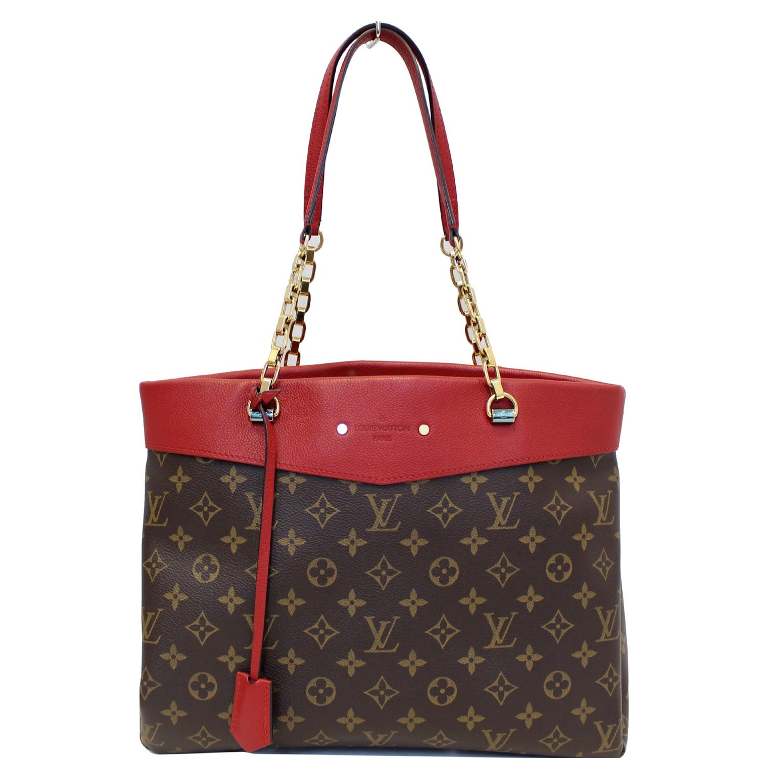 LOUIS VUITTON Pallas Chain Monogram Canvas Shopper Bag Brown