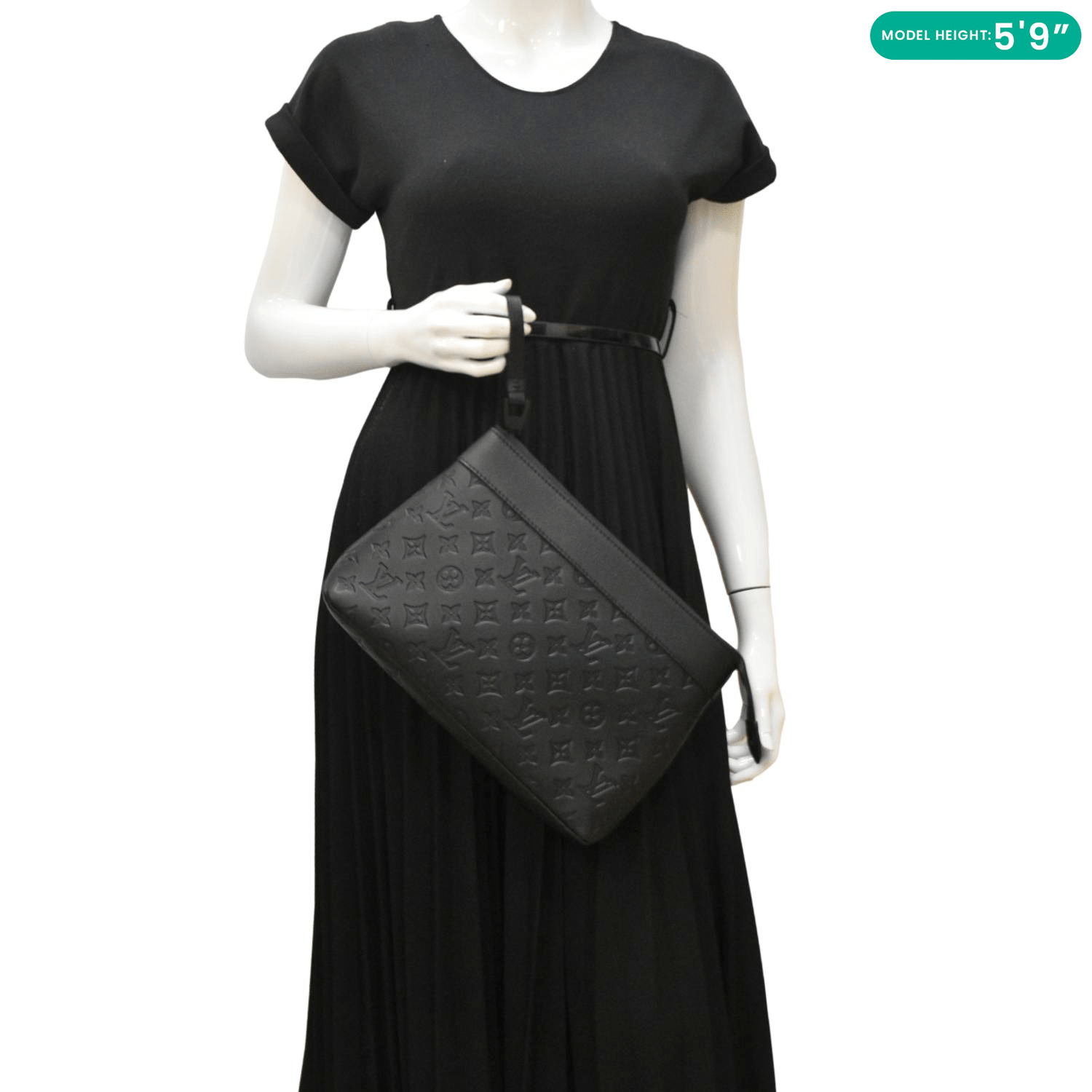 Pochette Voyage Monogram Shadow Leather Pouch Black