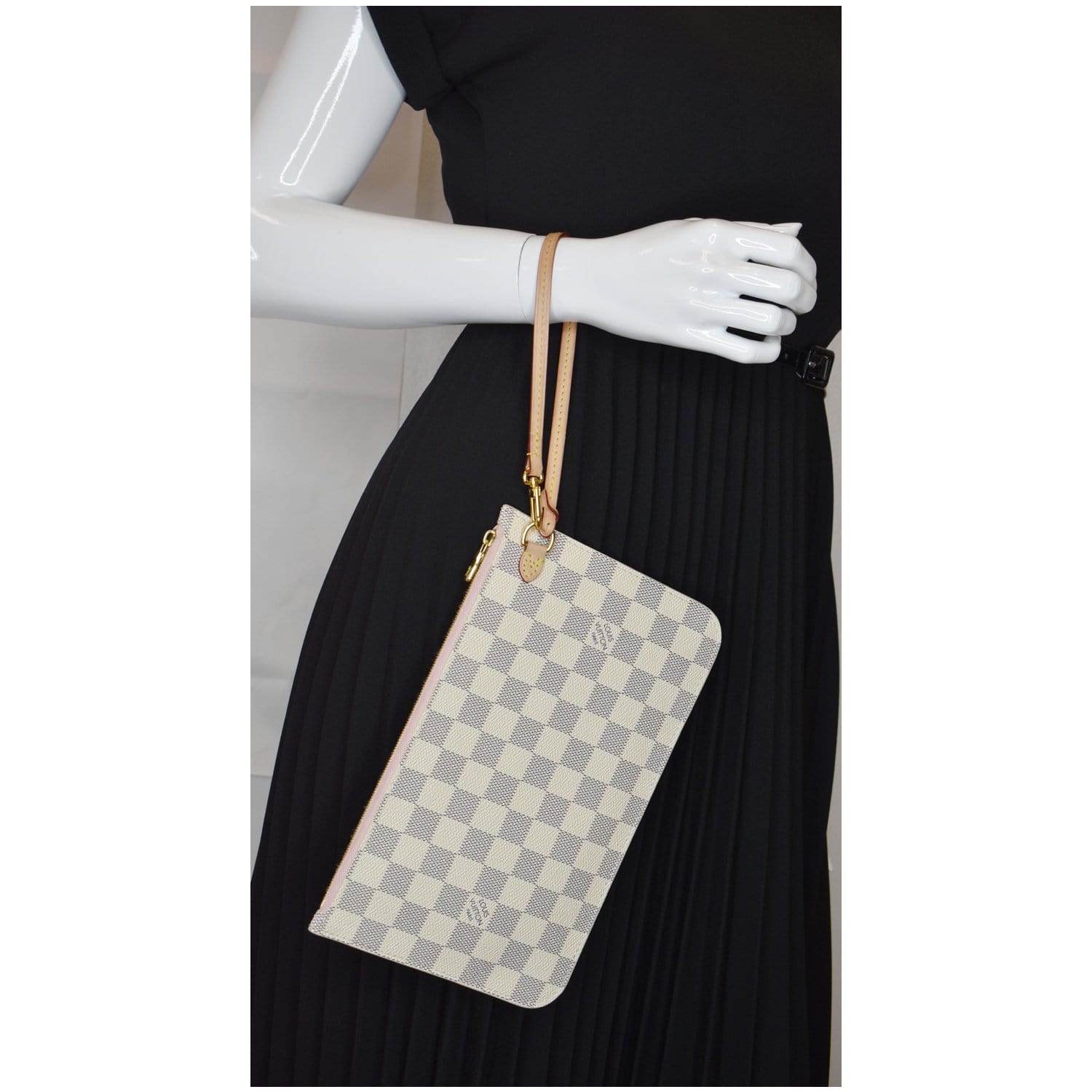 Pochette Wristlet Damier Azur Pouch Neverfull MM Rose Ballerine