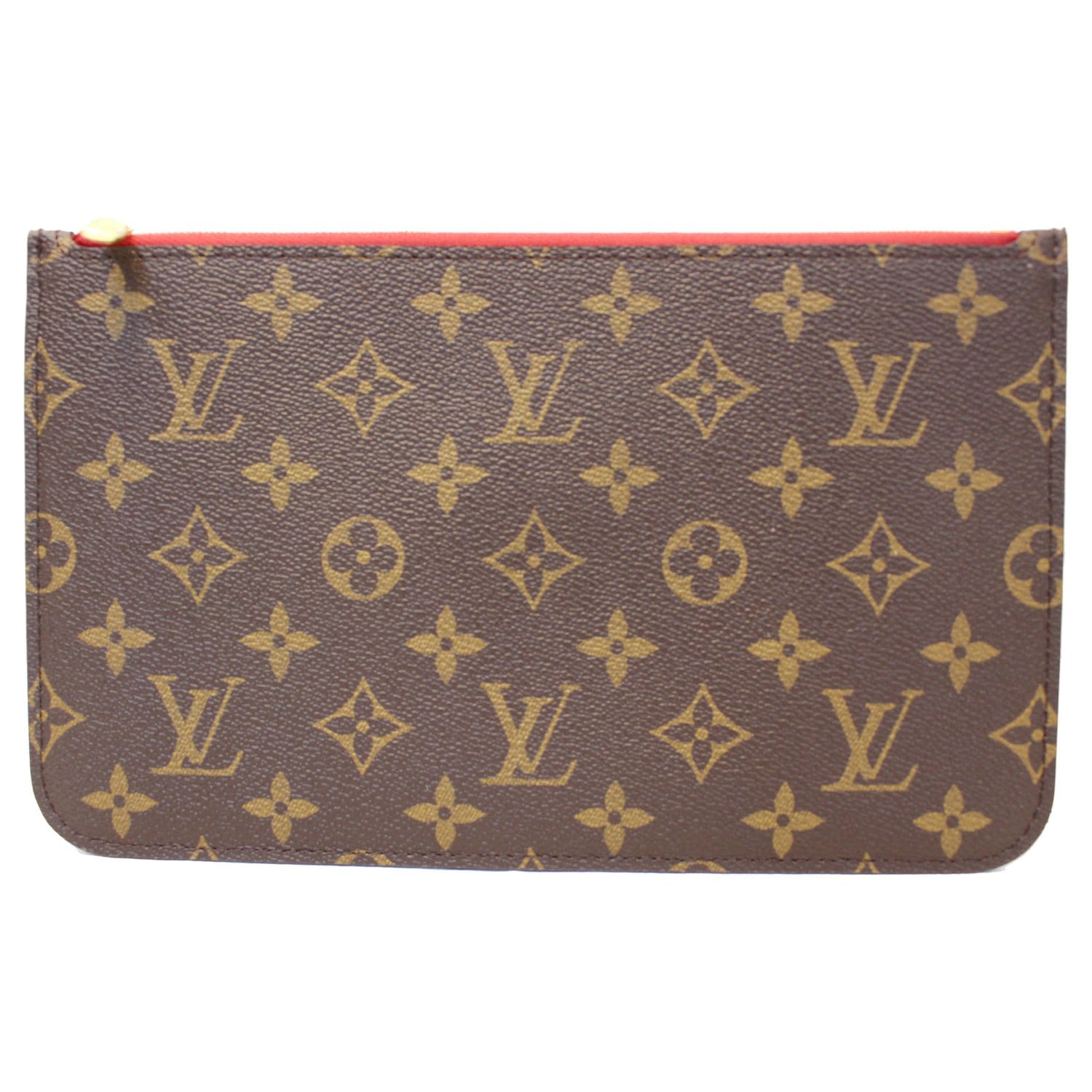LOUIS VUITTON Pochette Wristlet Pouch Monogram Canvas Neverfull MM Brown/Red