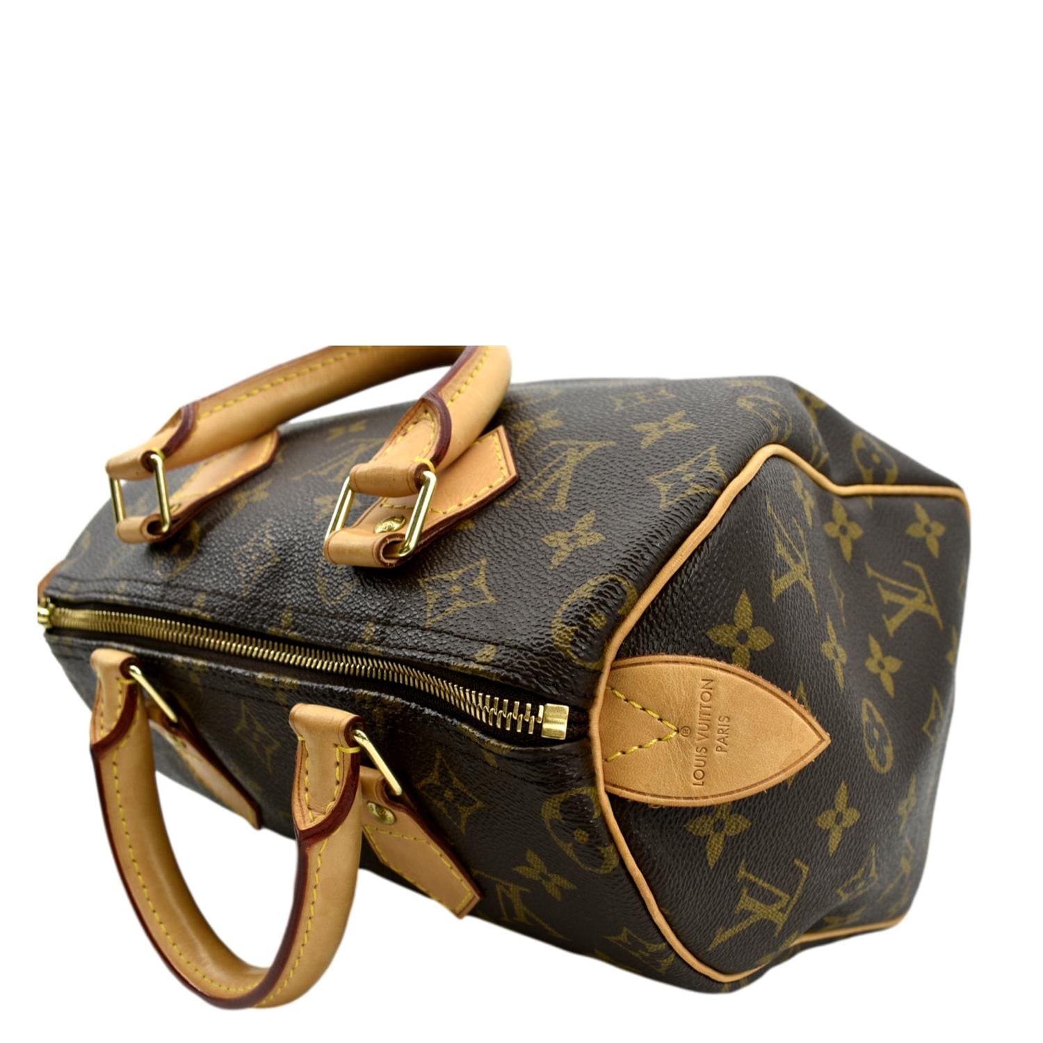 LOUIS VUITTON Speedy 25 Monogram Canvas Satchel Bag Brown