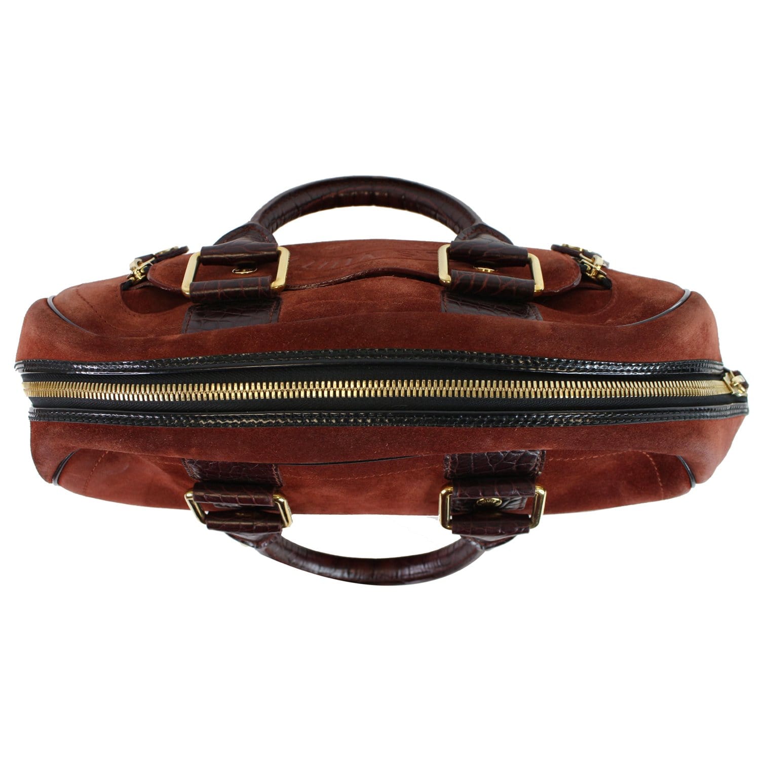 Stamped Trunk GM Suede Havane Satchel Bag Red