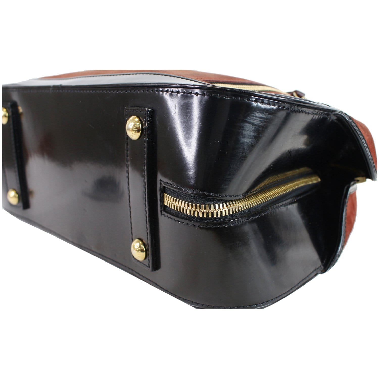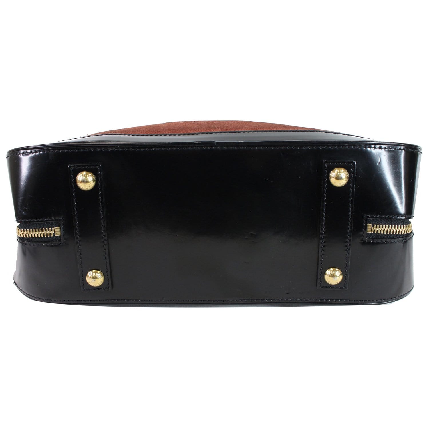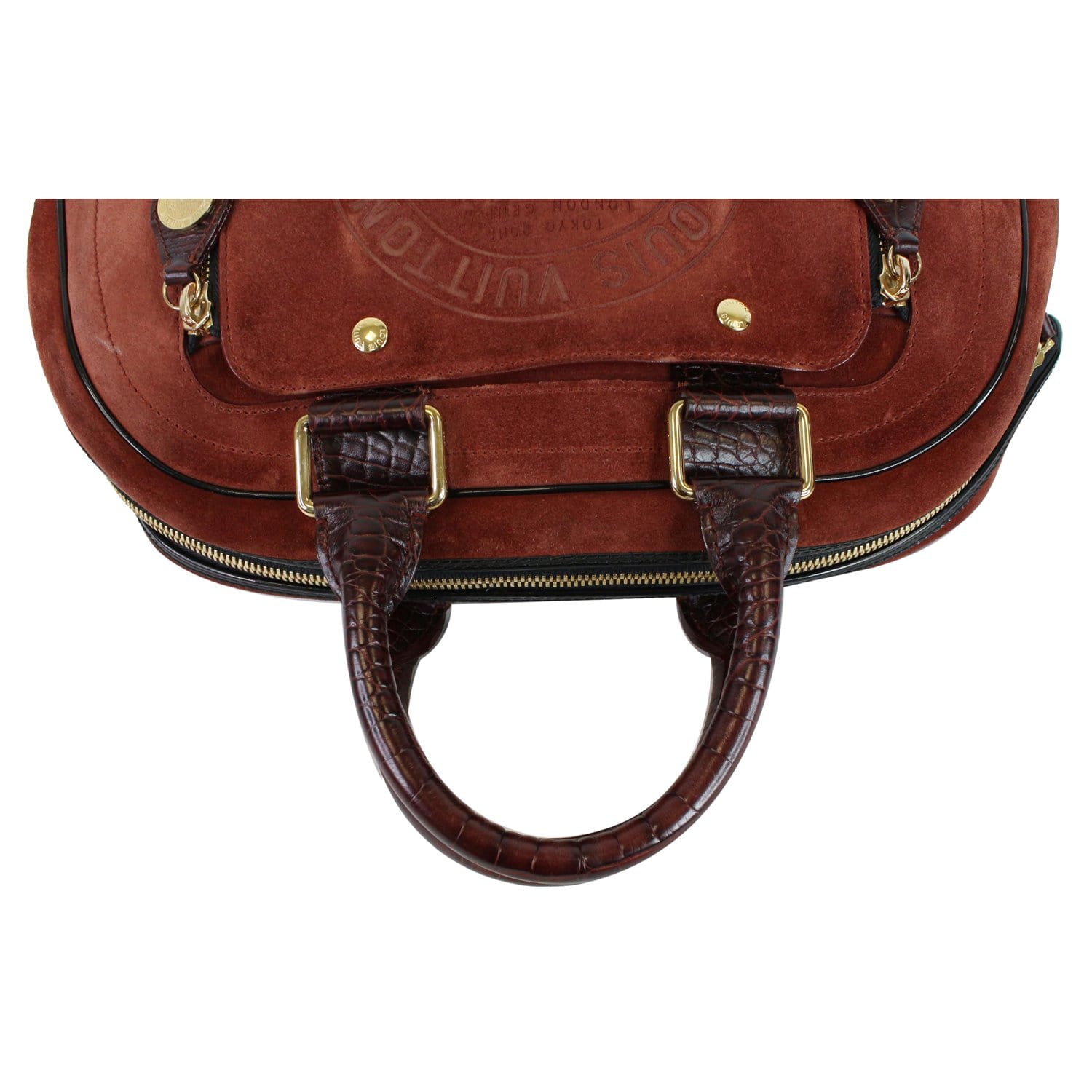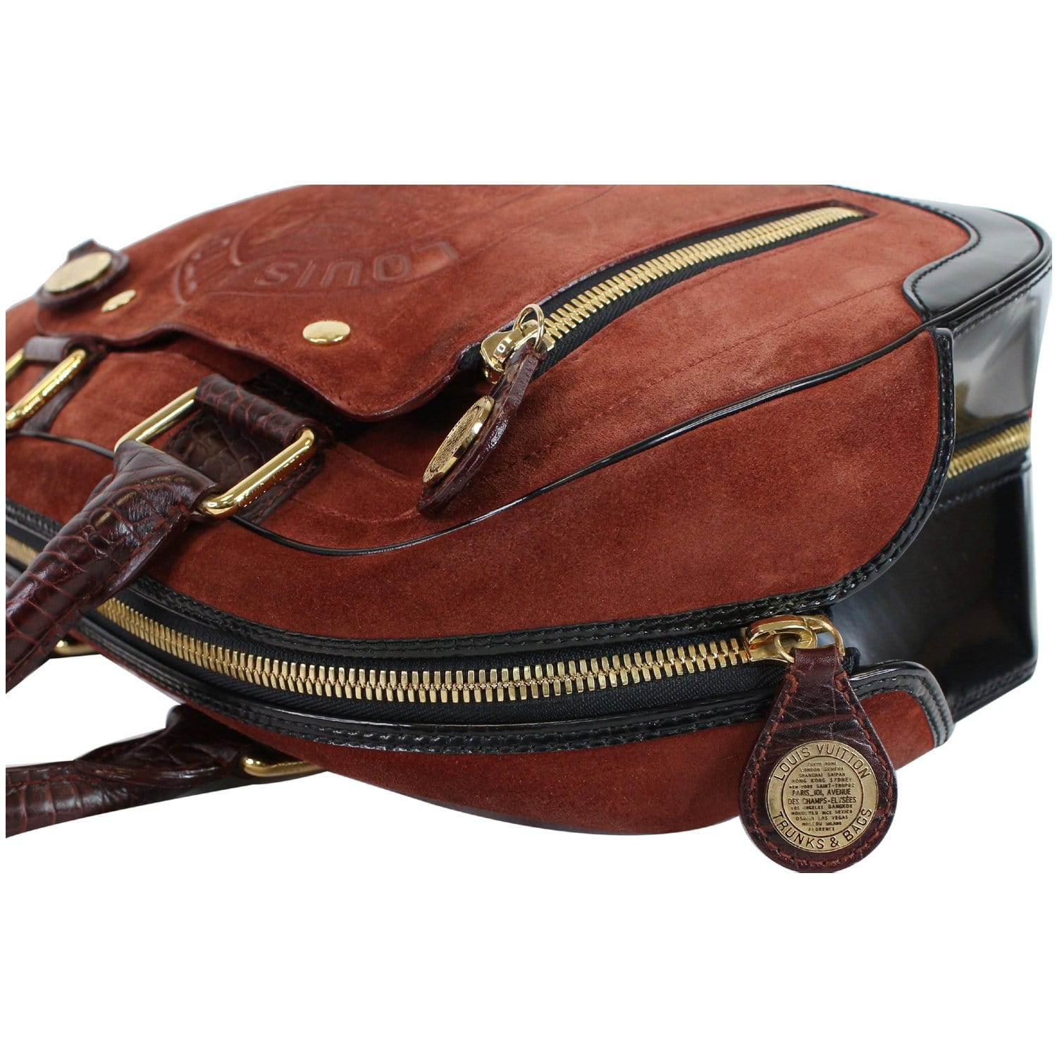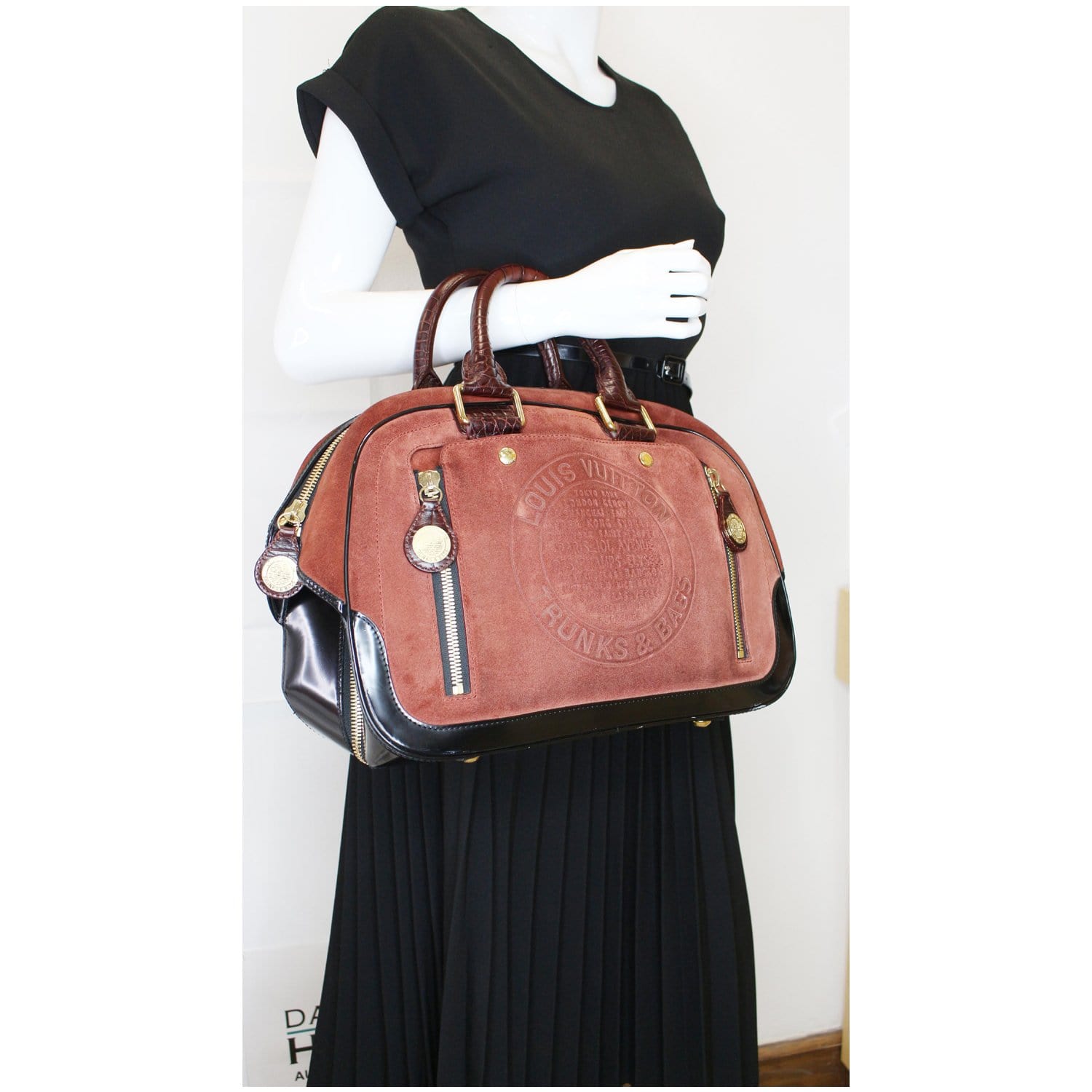 LOUIS VUITTON Stamped Trunk GM Suede Havane Satchel Bag Red
