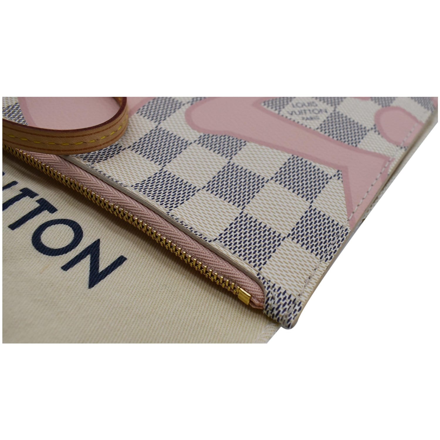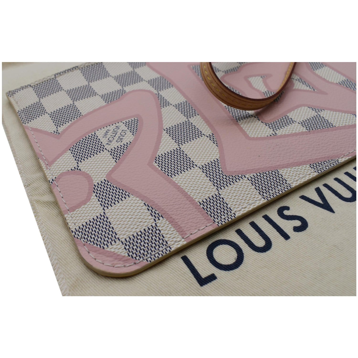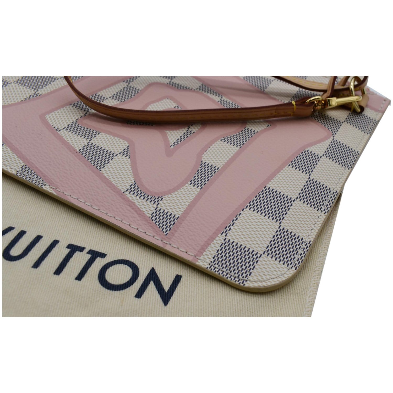 LOUIS VUITTON Tahitienne Pochette Wristlet Pouch Damier Azur Neverfull MM Pink