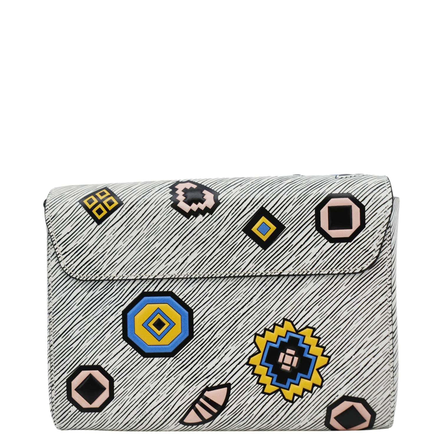 Make a statement with the LOUIS VUITTON Leather Shoulder Bag in striking white. Featuring LV's iconic twist lock and intricate Azteque design, it's a fusion of modern style and classic elegance, perfect for the fashion-forward sophisticate.