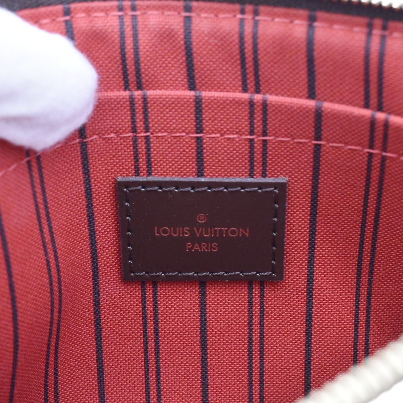 LOUIS VUITTON Neverfull Damier Ebene Pochette Wristlet Pouch Brown
