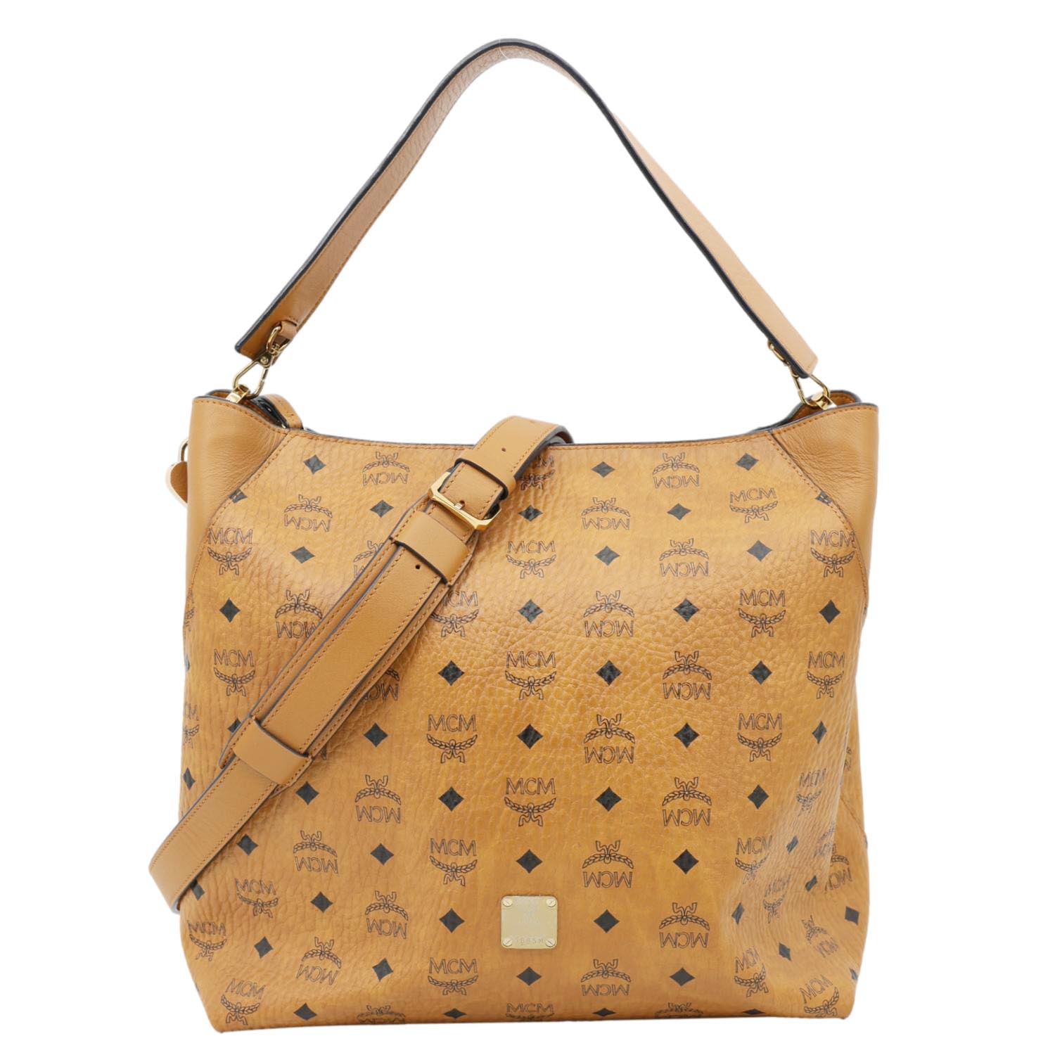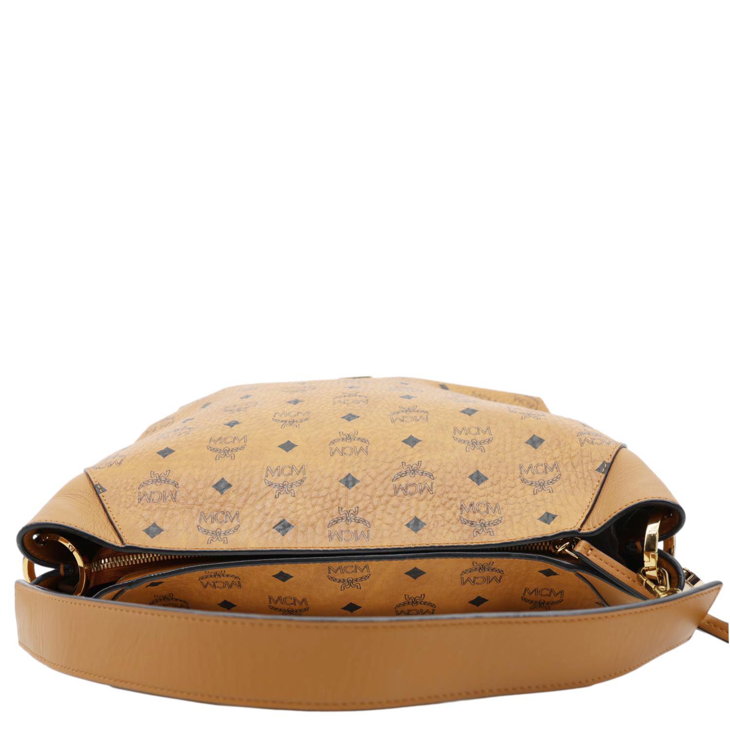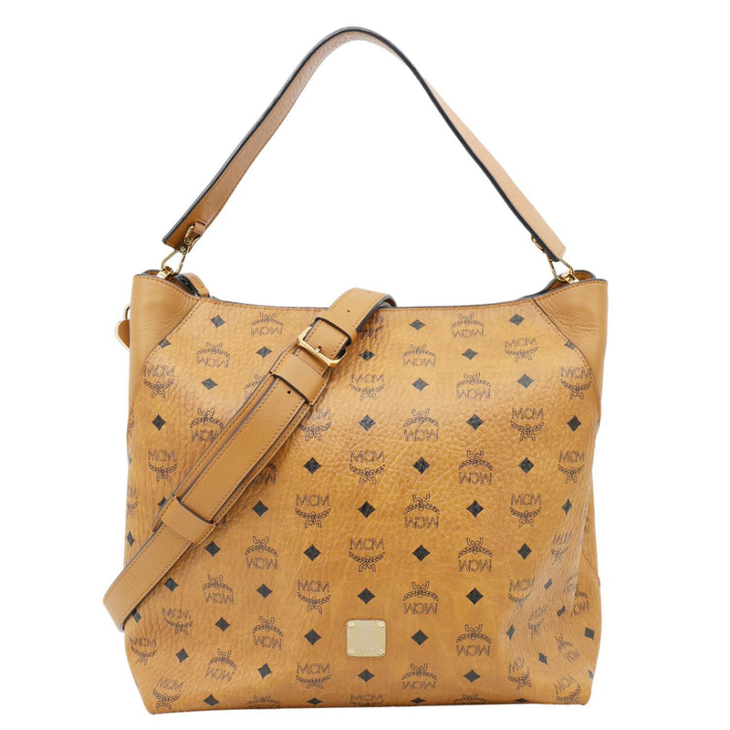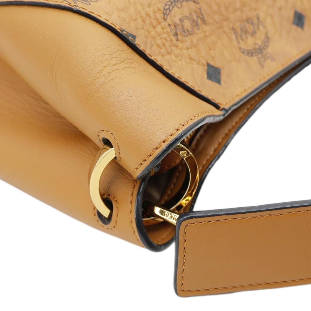 MCM Klara Monogram Visetos Leather Hobo Bag Cognac