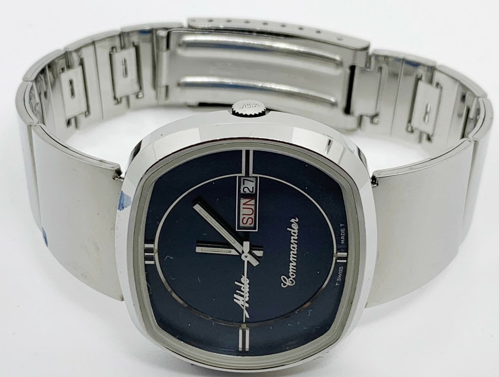 Commander 1970 Day Date Men's Stainless Steel Watch Blue Dial 41MM