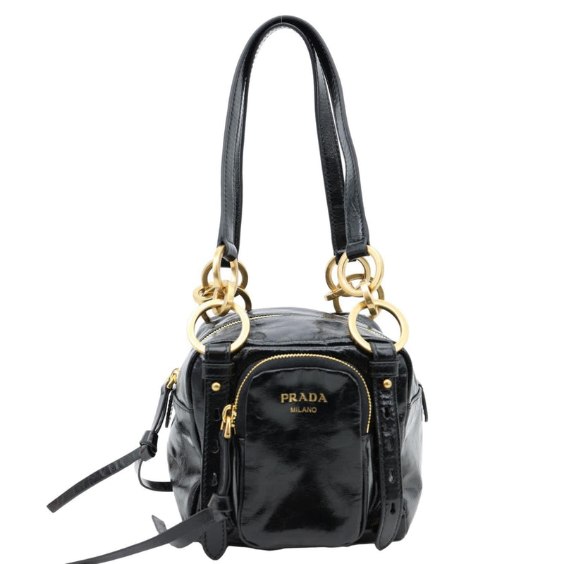 PRADA Dangle Mini Calfskin Leather Top Handle Bag Black