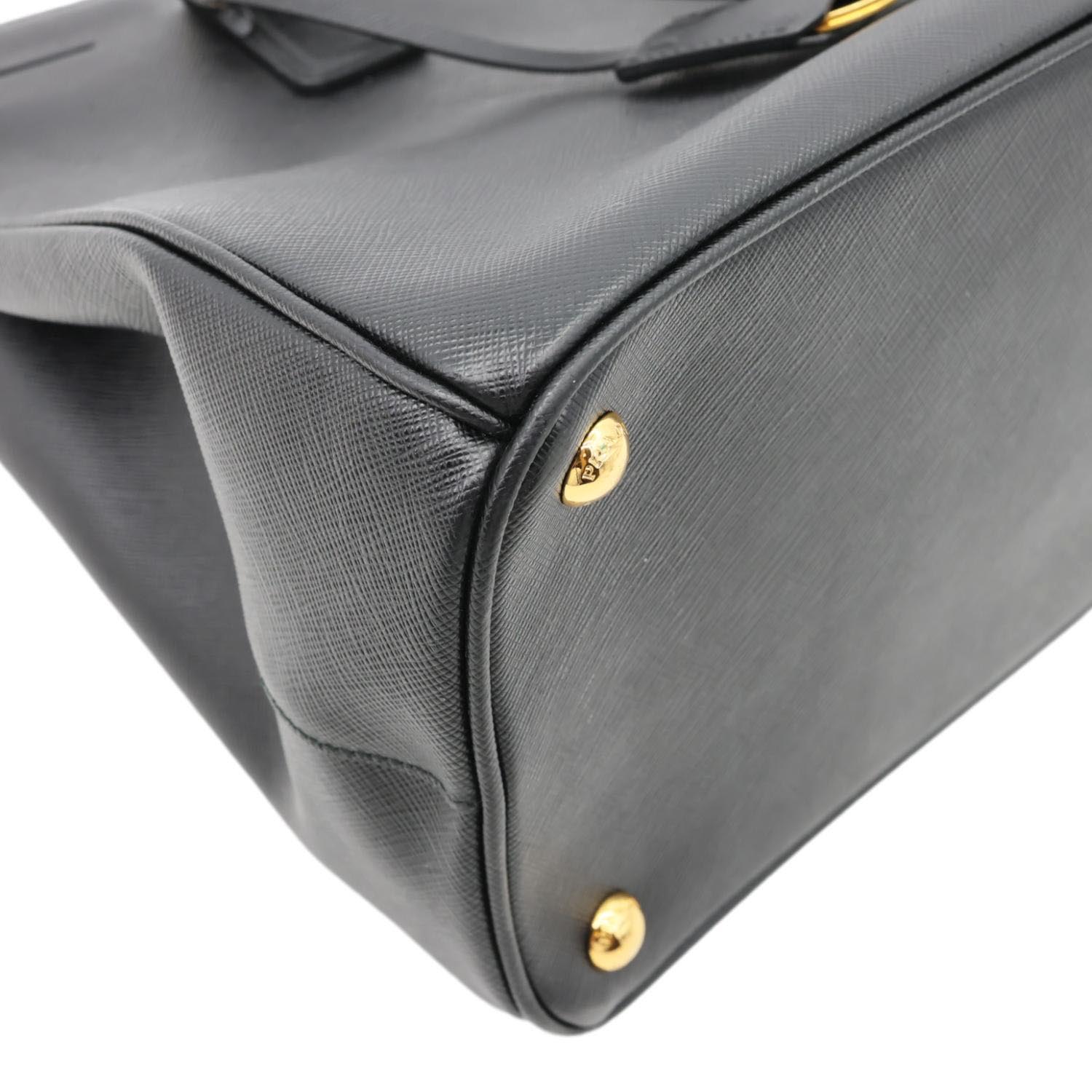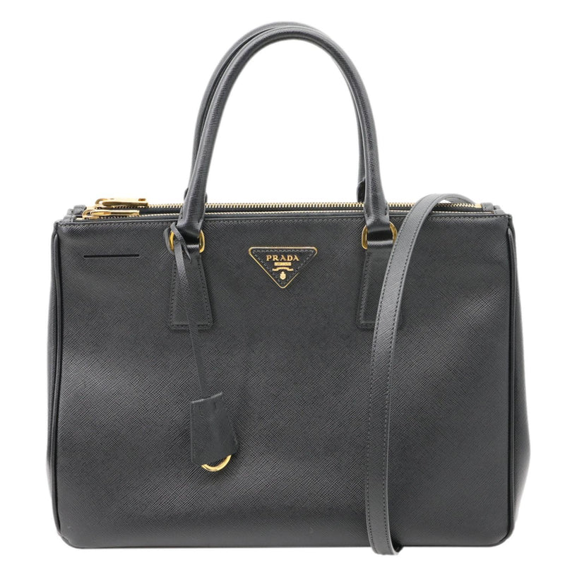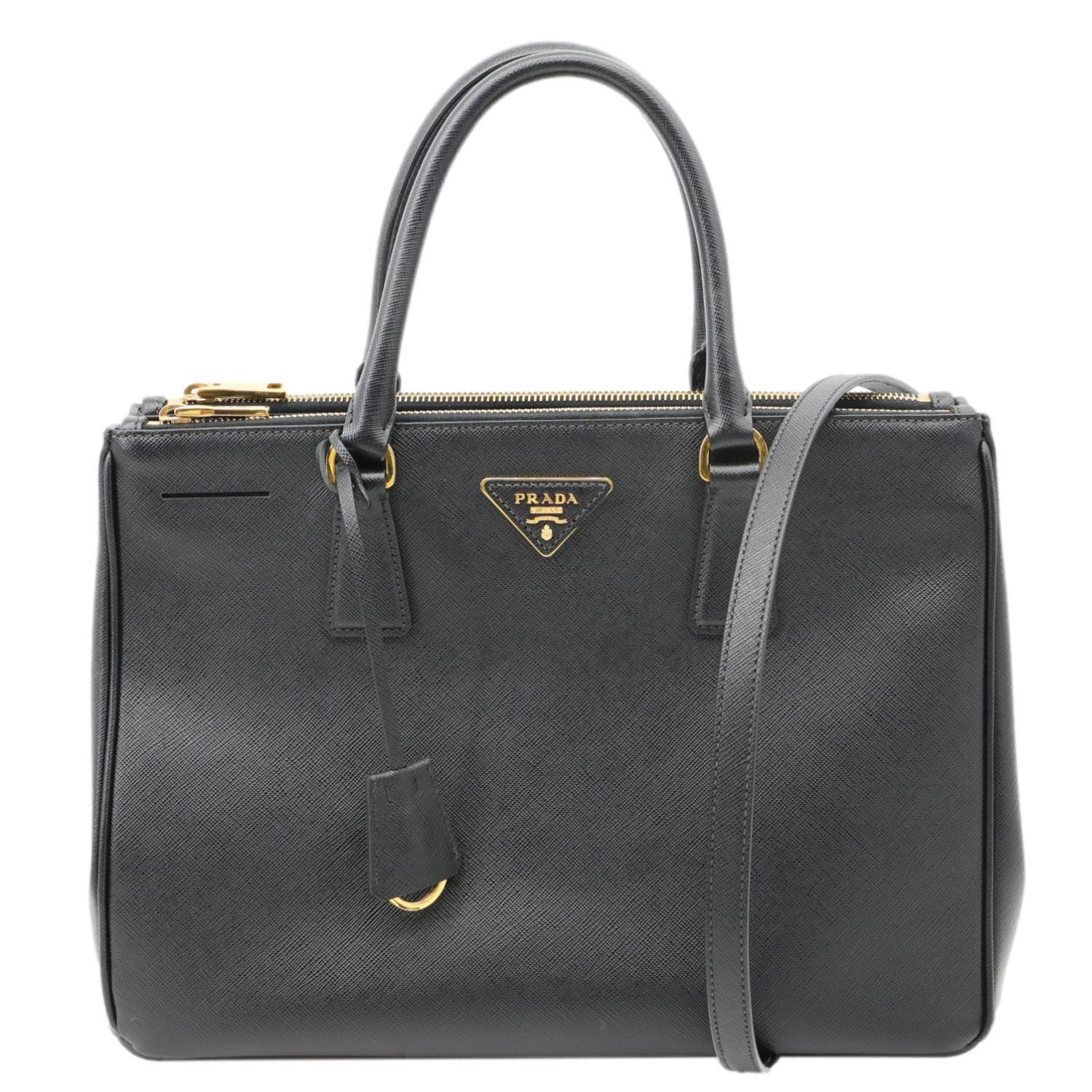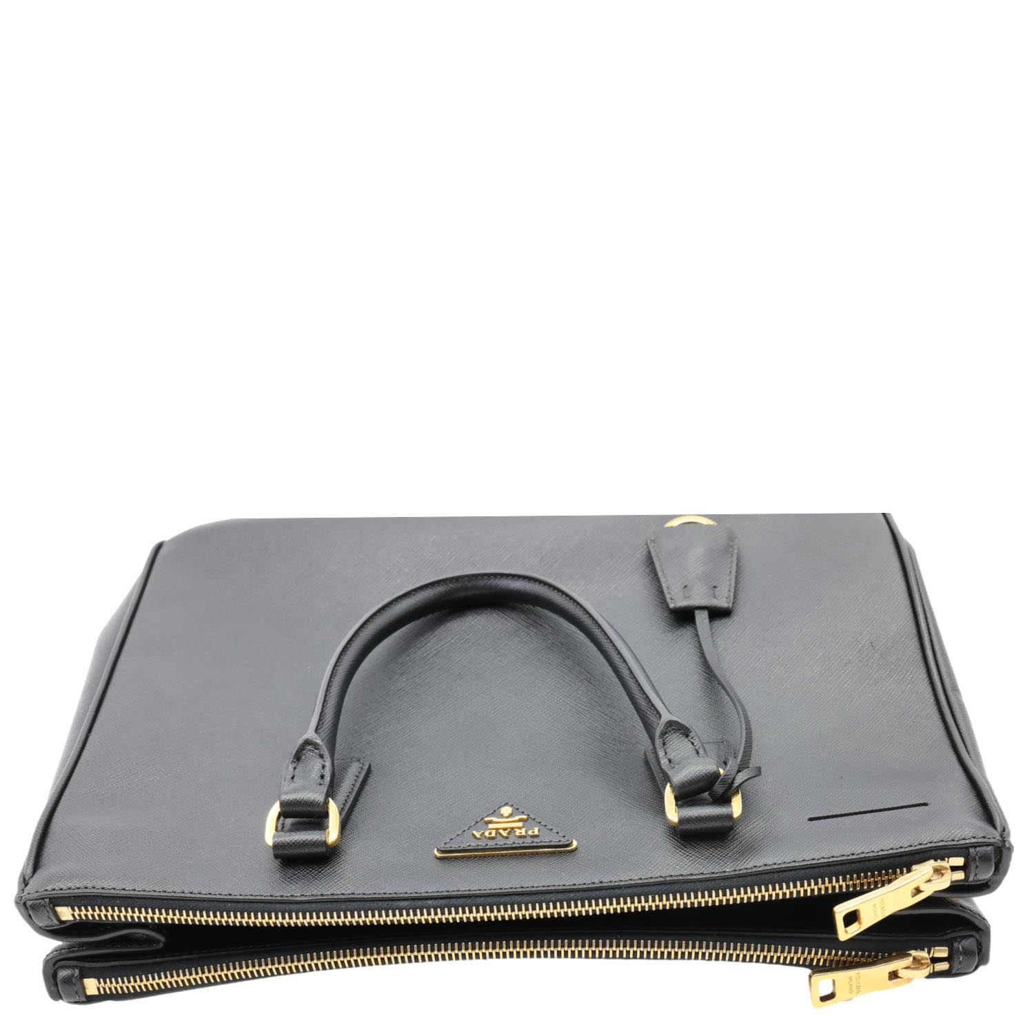 Galleria Double Zip Saffiano Leather Top Handle Shoulder Bag Black