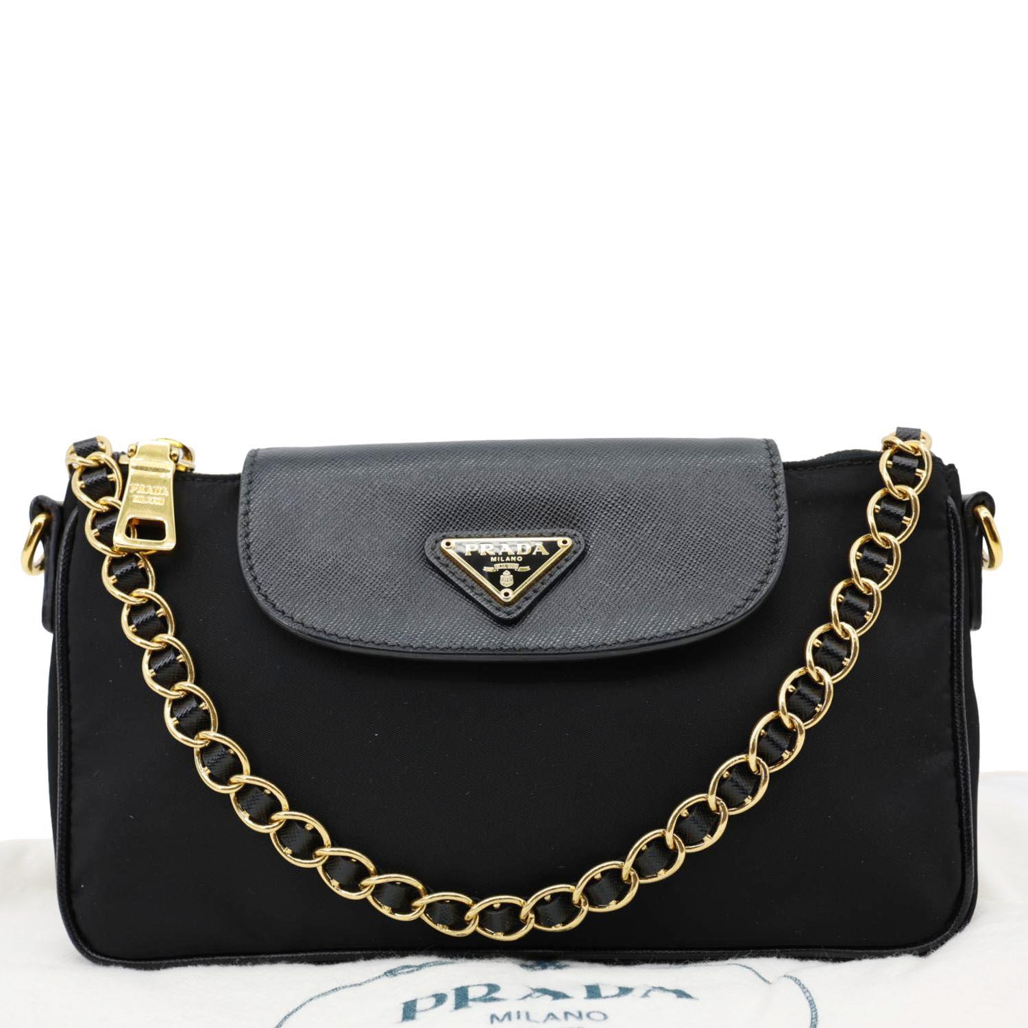 PRADA Tessuto Saffiano Chain Shoulder Bag Black