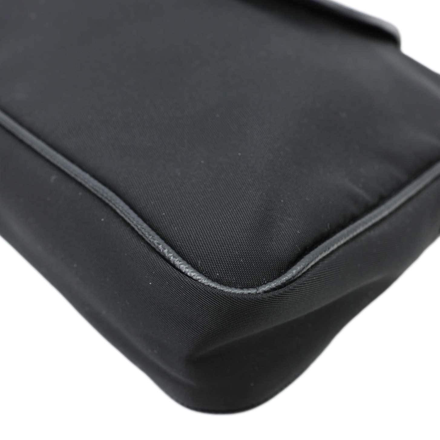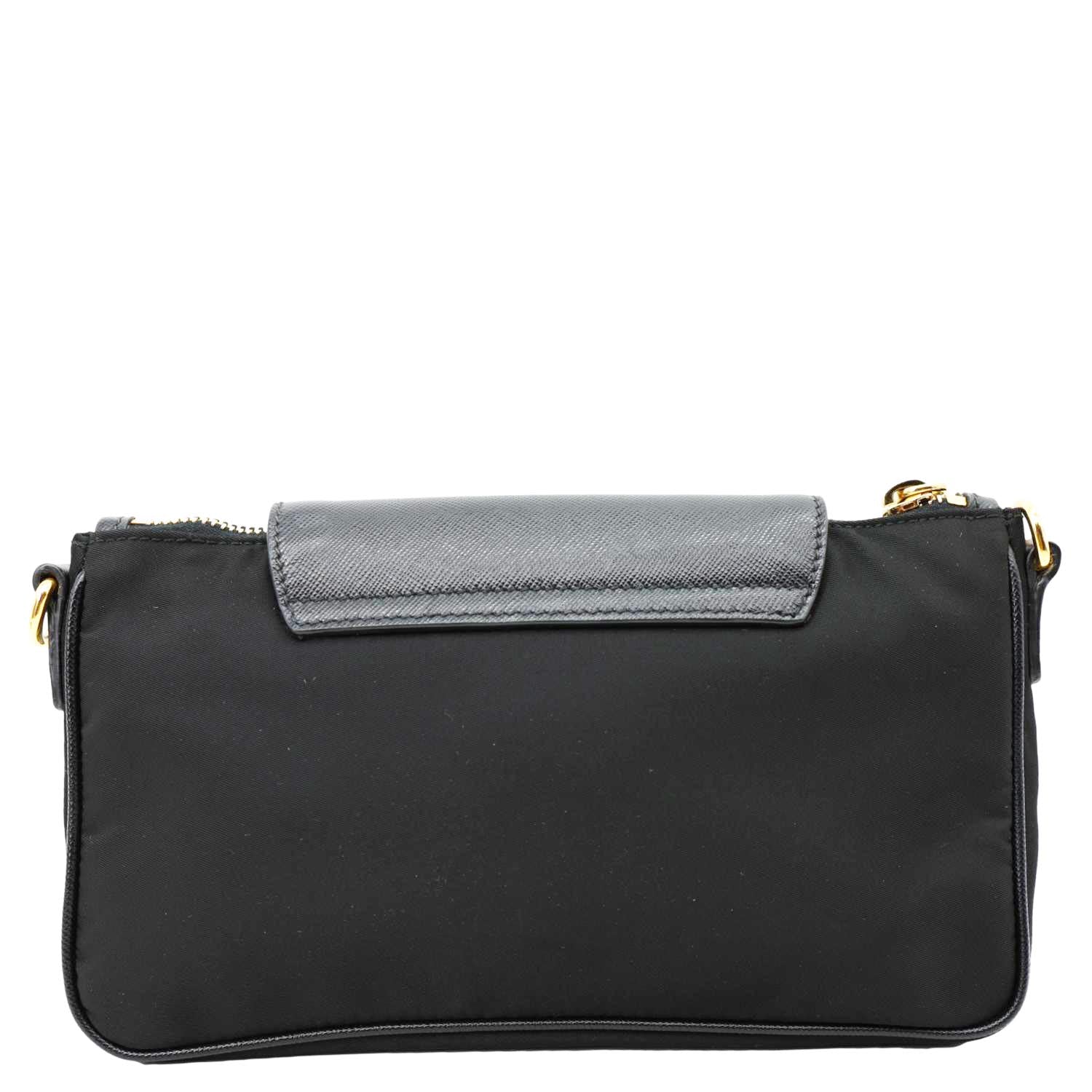 PRADA Tessuto Saffiano Chain Shoulder Bag in black nylon with saffiano leather detailing. Designed with a structured flap and refined chain strap for versatile wear. A lightweight yet sophisticated piece, perfect for daily elegance.