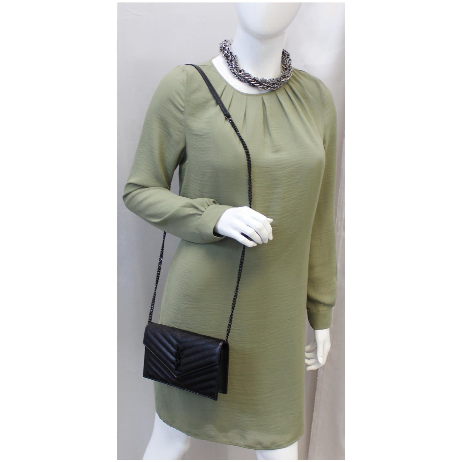 Yves Saint Laurent Wallet Chain Matelasse Chevron Black