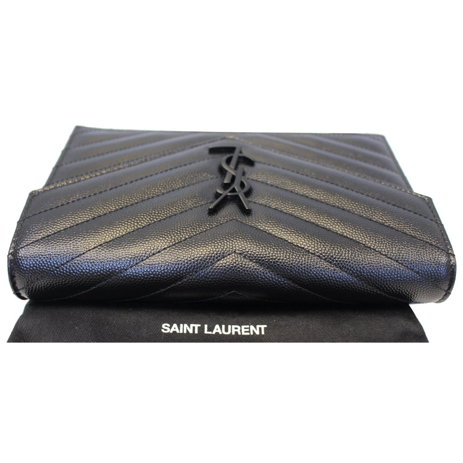 YVES SAINT LAURENT Matelasse Chevron Grain De Poudre Envelope Chain Wallet Black