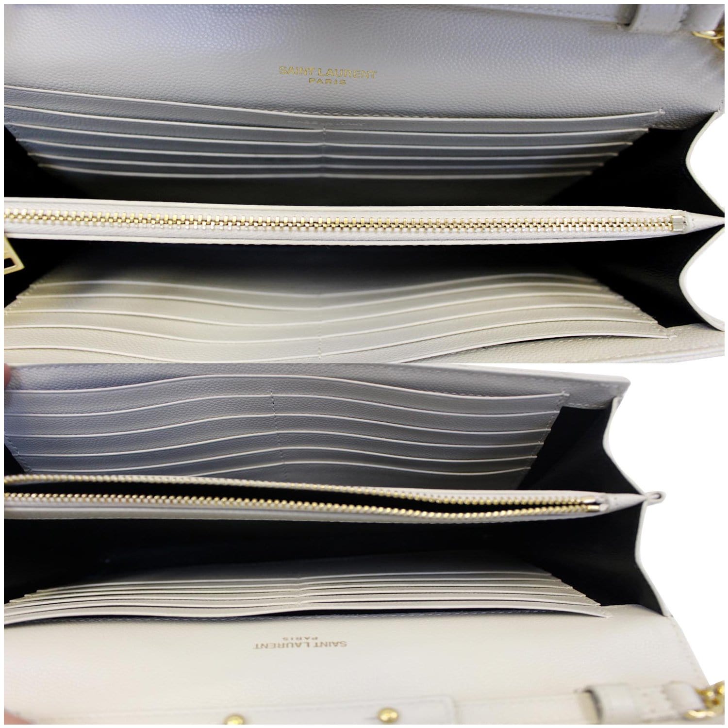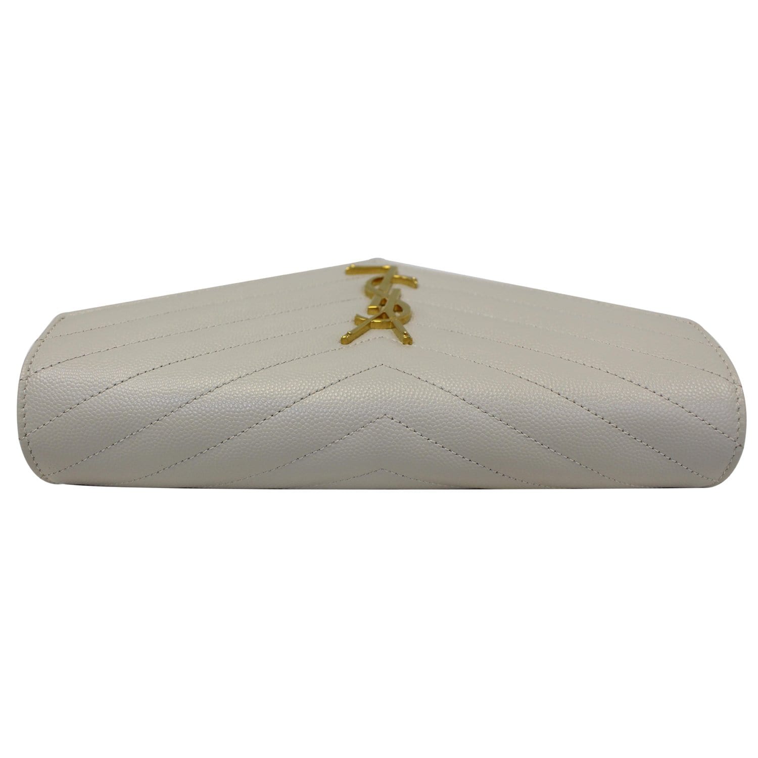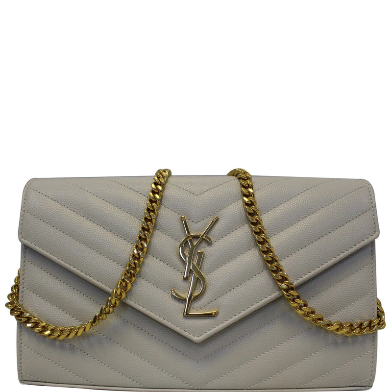 YVES SAINT LAURENT Matelasse Chevron Grain De Poudre Envelope Chain Wallet White
