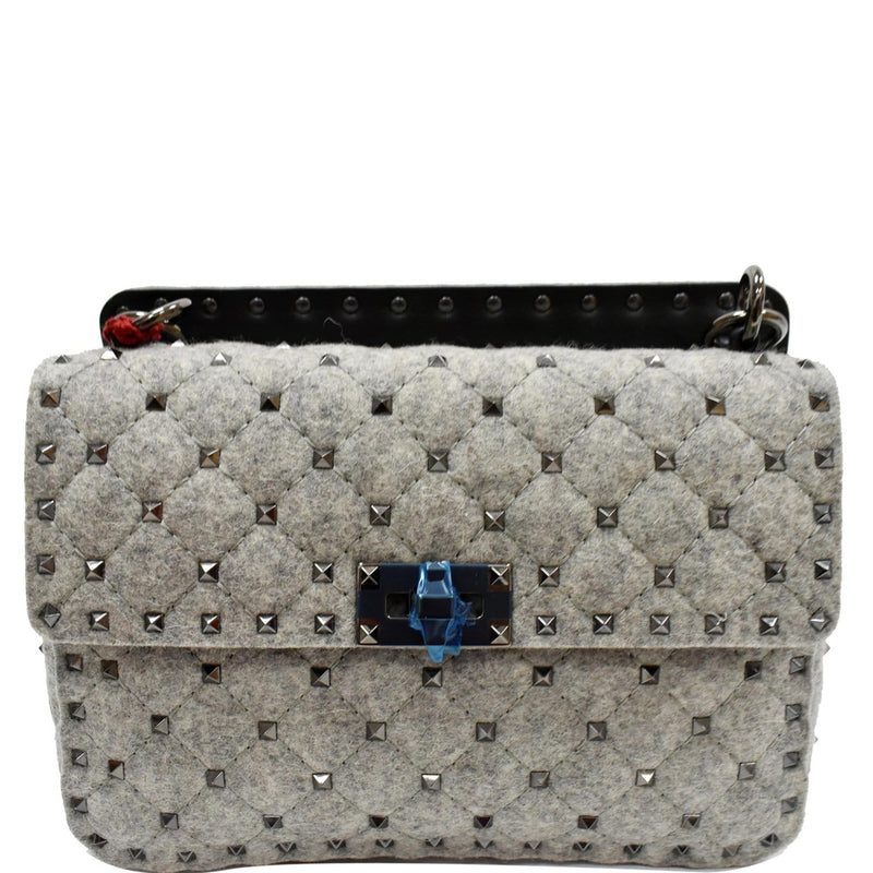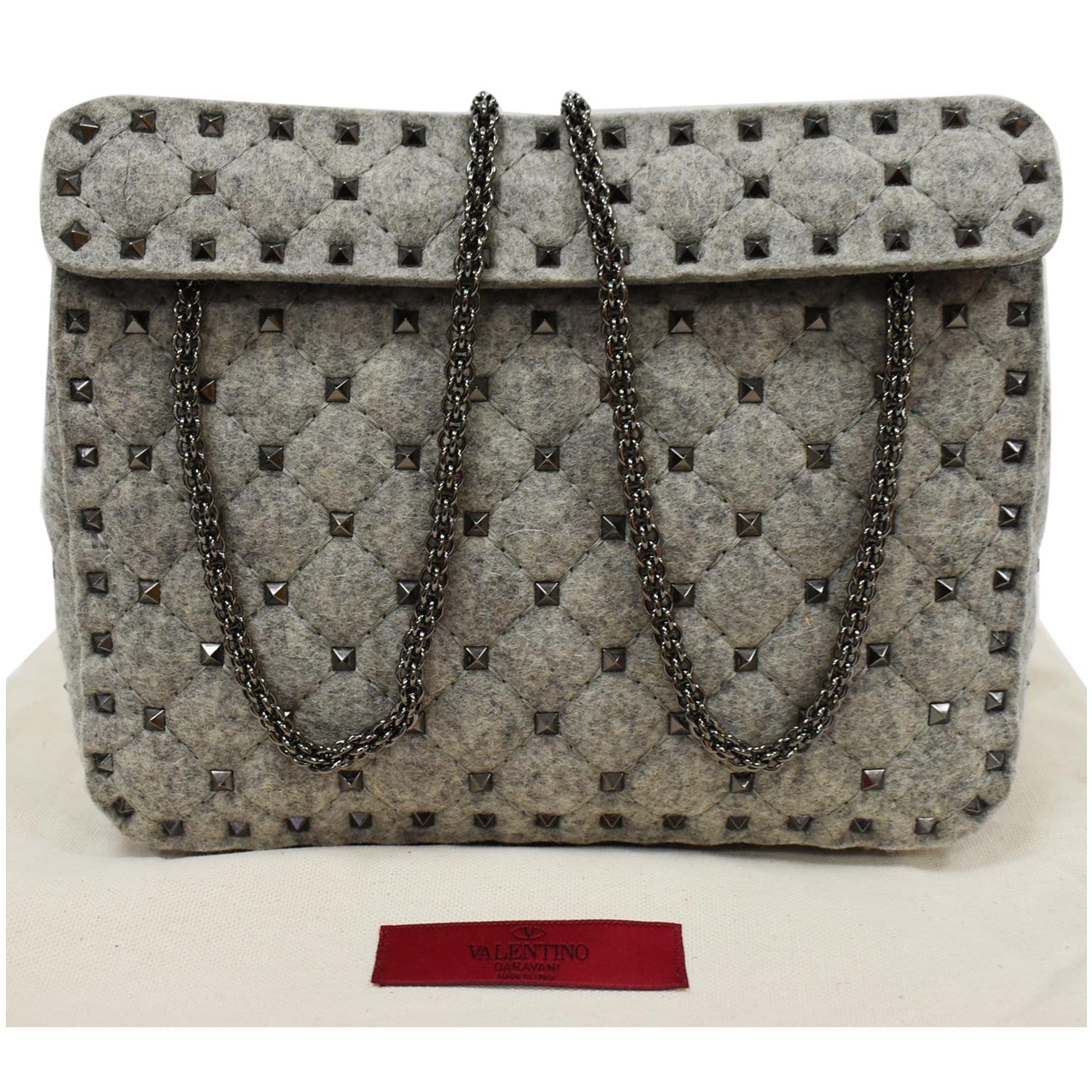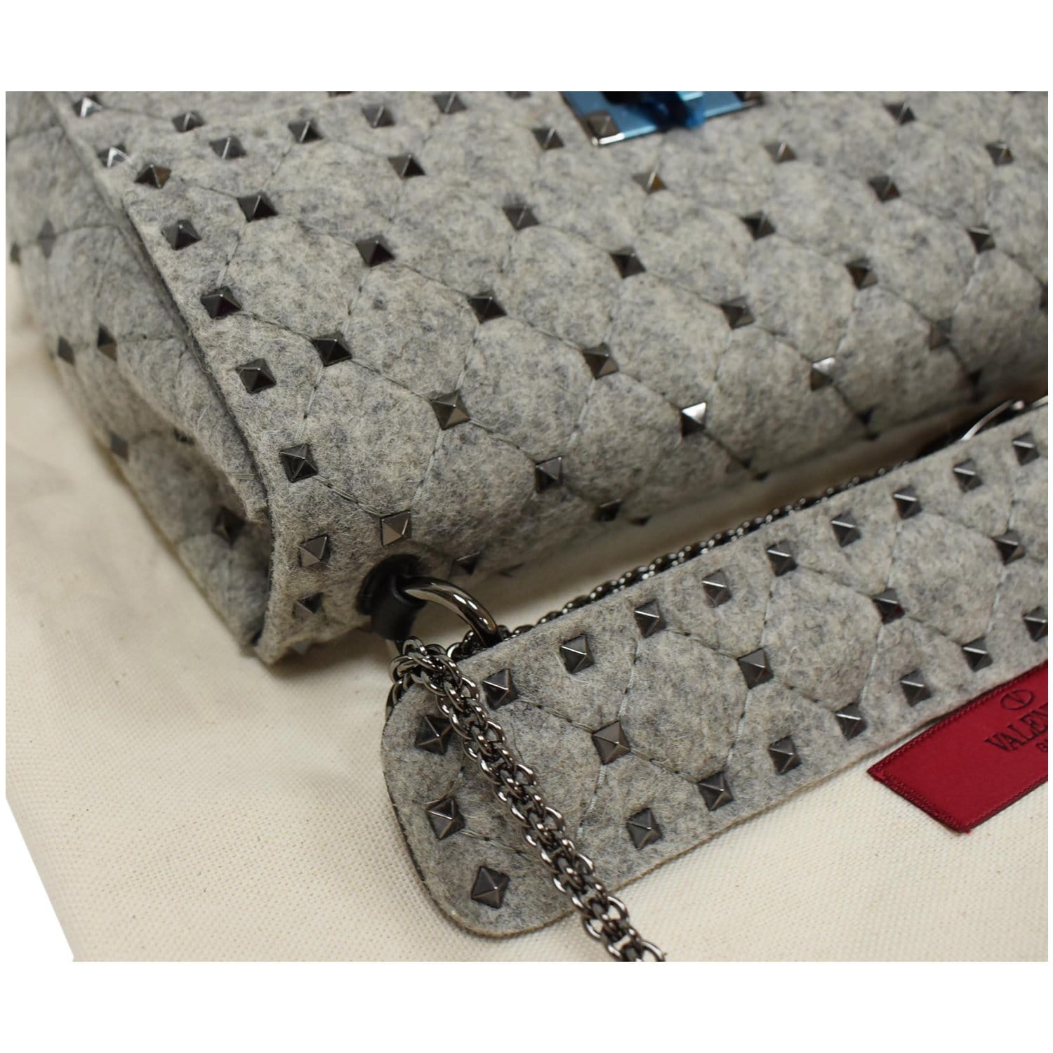 Valentino Garavani Rockstud Spike Chain Canvas Crossbody Bag Grey