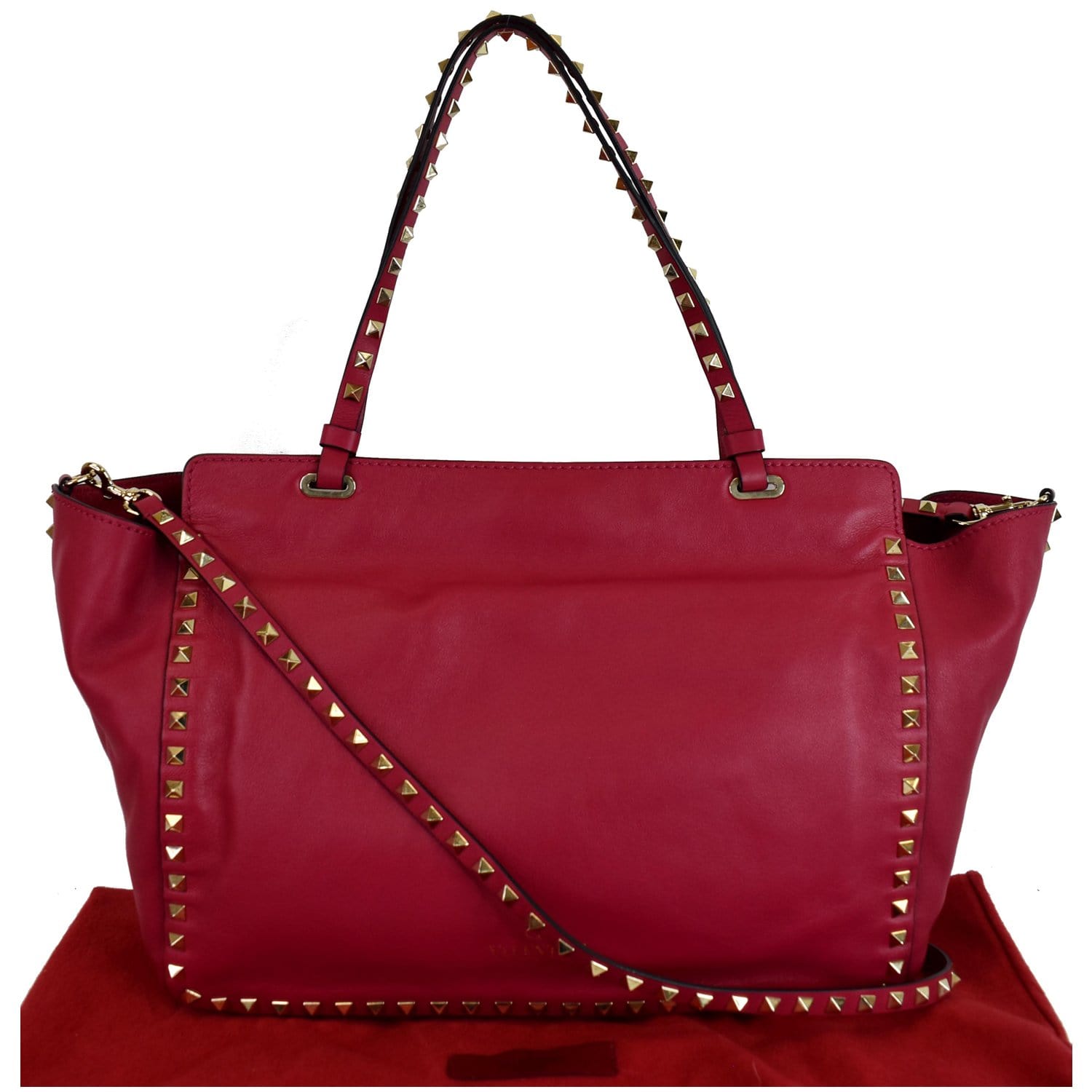 VALENTINO Rockstud Leather Medium Tote Shoulder Bag Pink