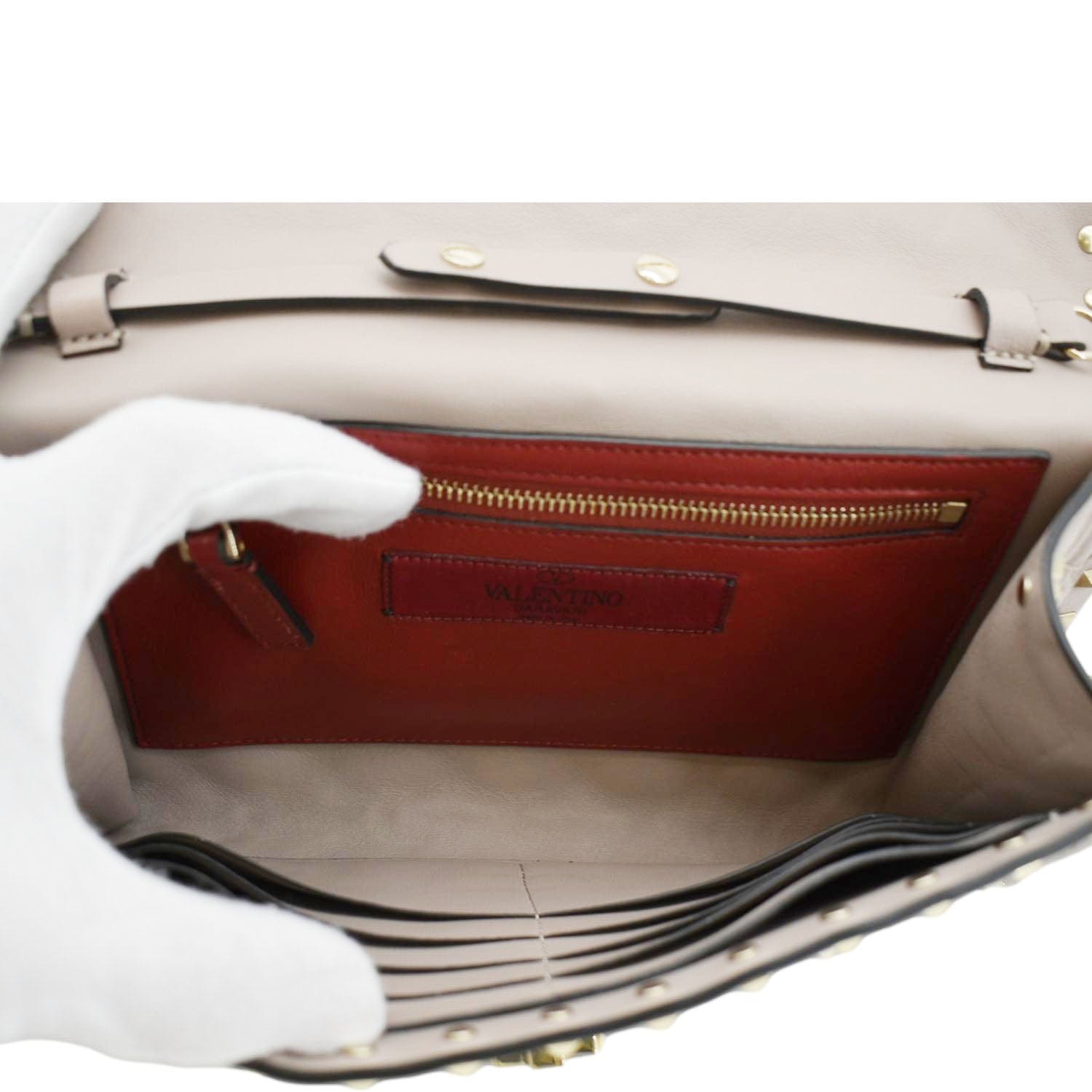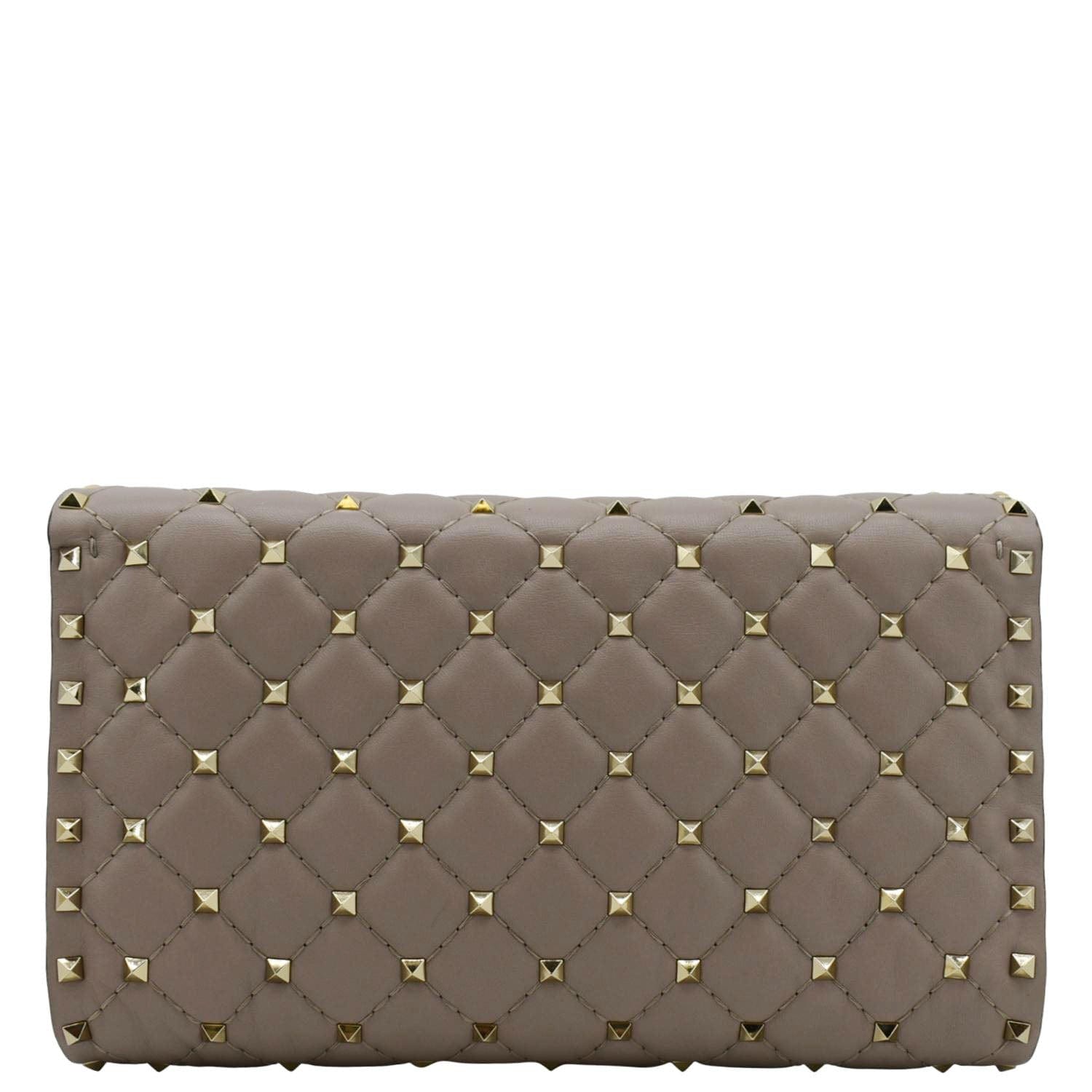 VALENTINO Rockstud Spike Quilted Leather Chain Crossbody Bag Poudre