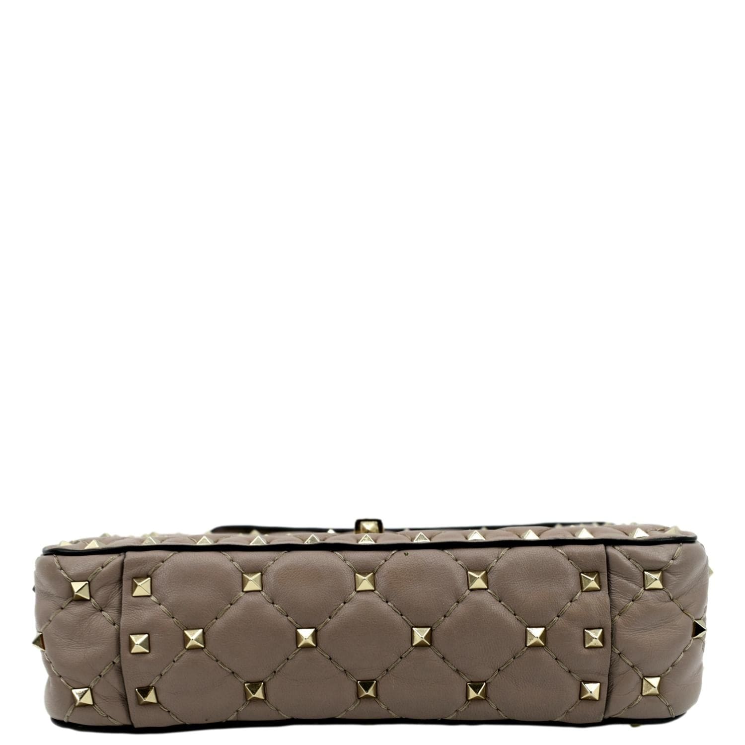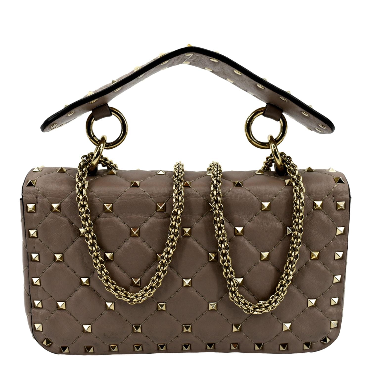 Rockstud Spike Quilted Leather Top Handle Crossbody Bag Poudre
