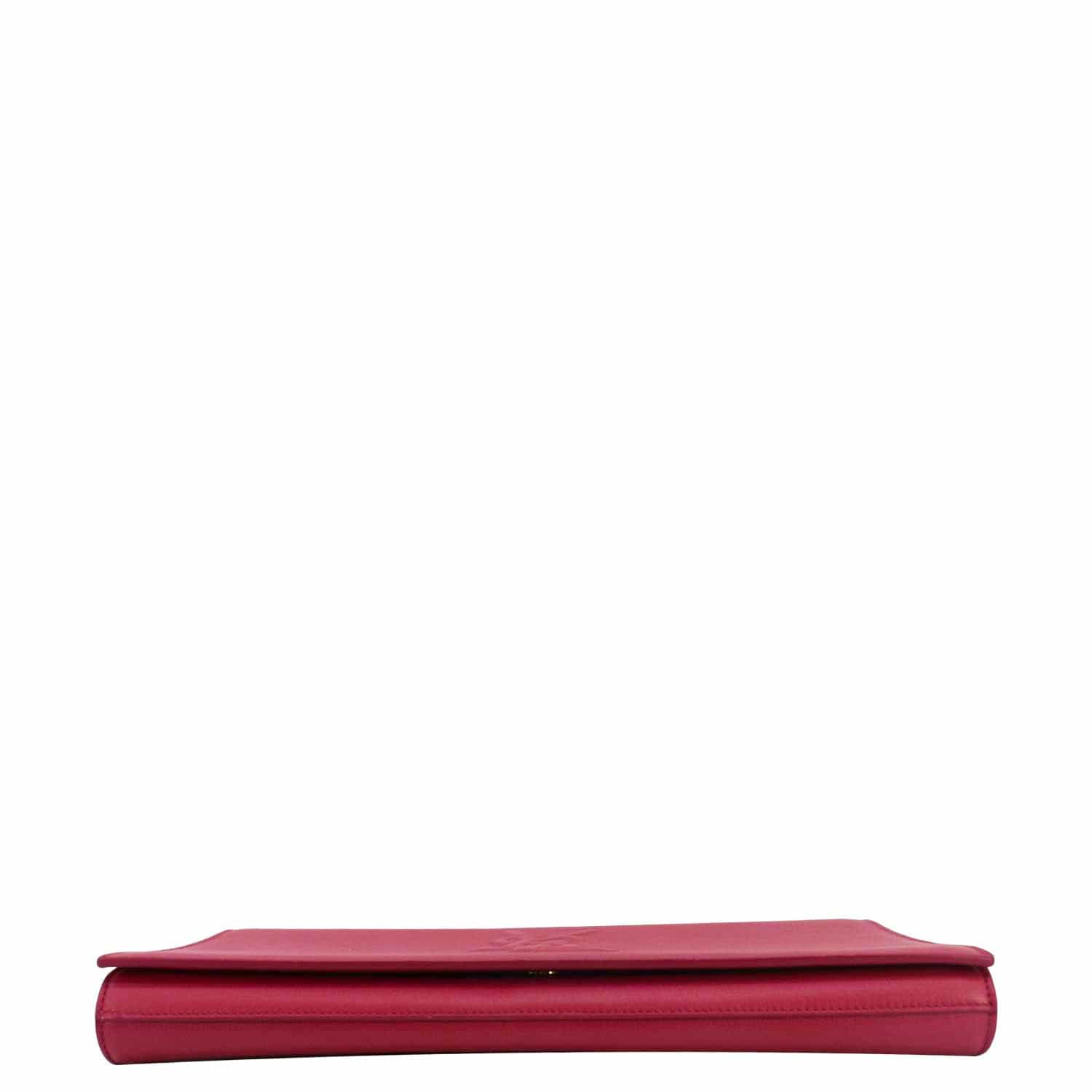 The YVES SAINT LAURENT Belle de Jour Leather Clutch Bag in vibrant fuchsia offers a chic, elegant design with a luxurious leather finish, perfect for adding a pop of color to any outfit.