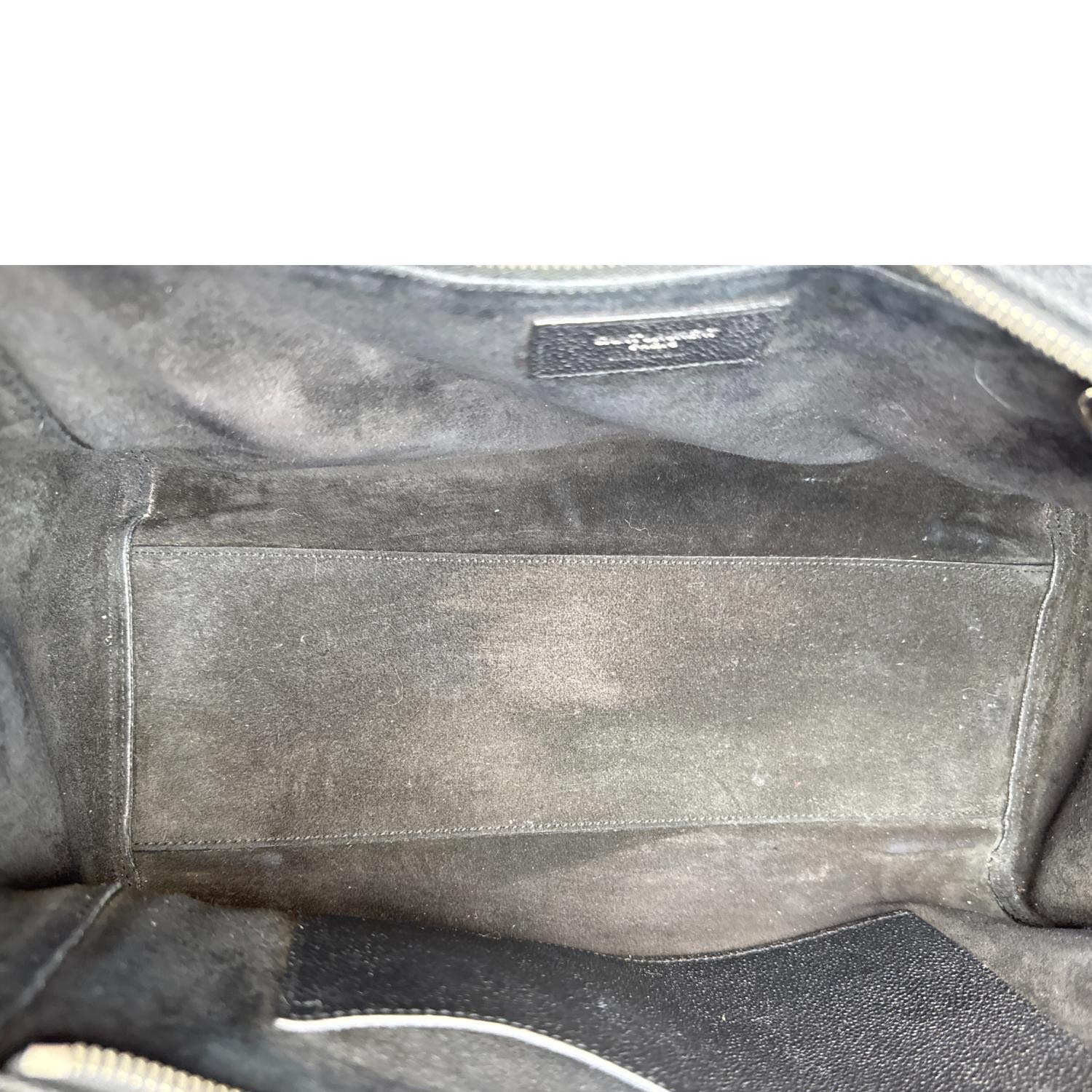 The YSL Cabas Rive Gauche Small Satchel is crafted in sleek black leather with a structured silhouette. Designed with dual top handles and minimal gold-tone accents, it reflects timeless sophistication. A chic carry-all for both professional and everyday style.