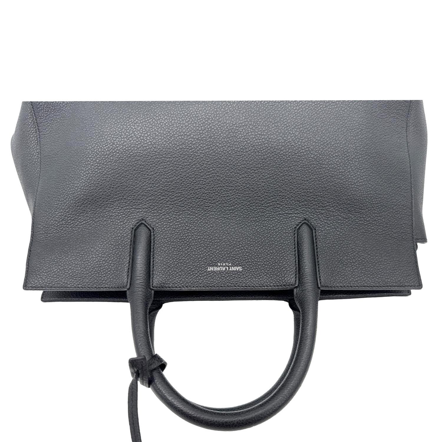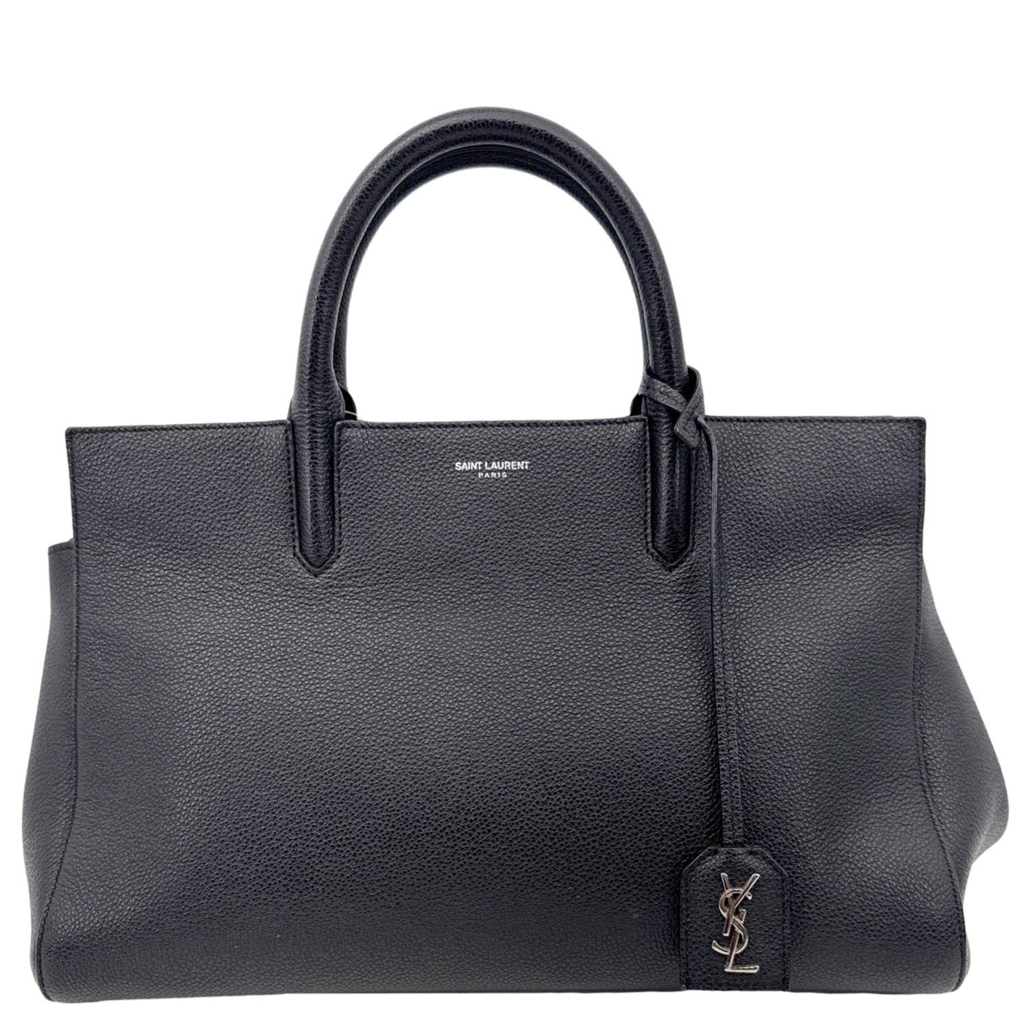 Cabas Rive Gauche Small Pebbled Leather Satchel Bag Black