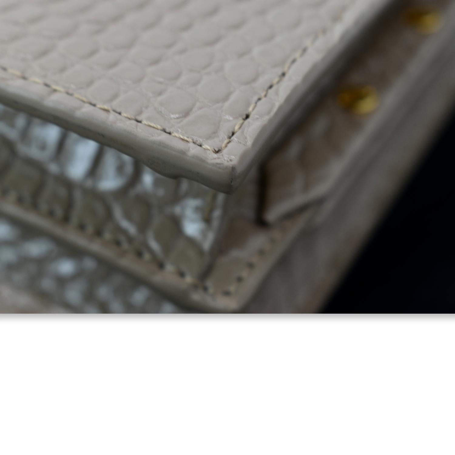 YVES SAINT LAURENT Cassandra Top Handle Embossed Shoulder Bag Beige