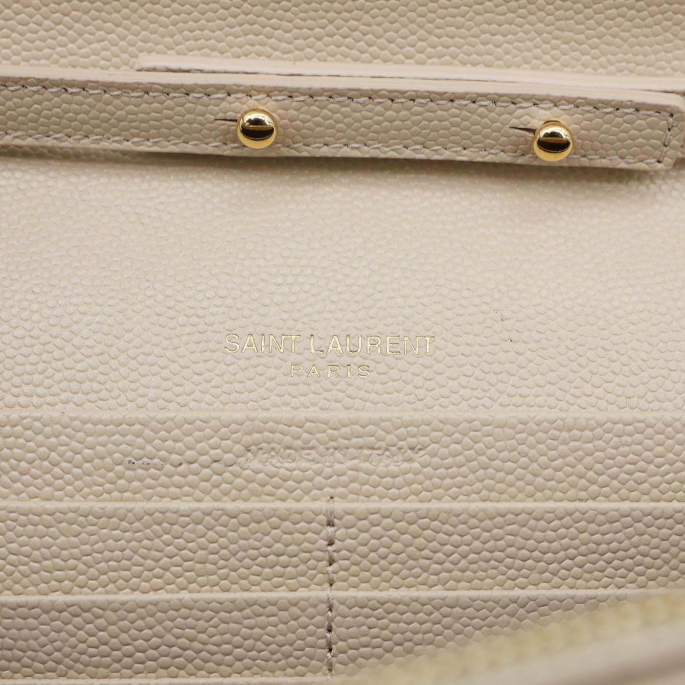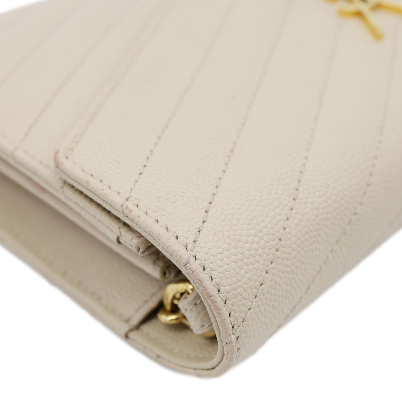 YVES SAINT LAURENT Envelope Grain De Poudre Chevron Leather Wallet On Chain Beige