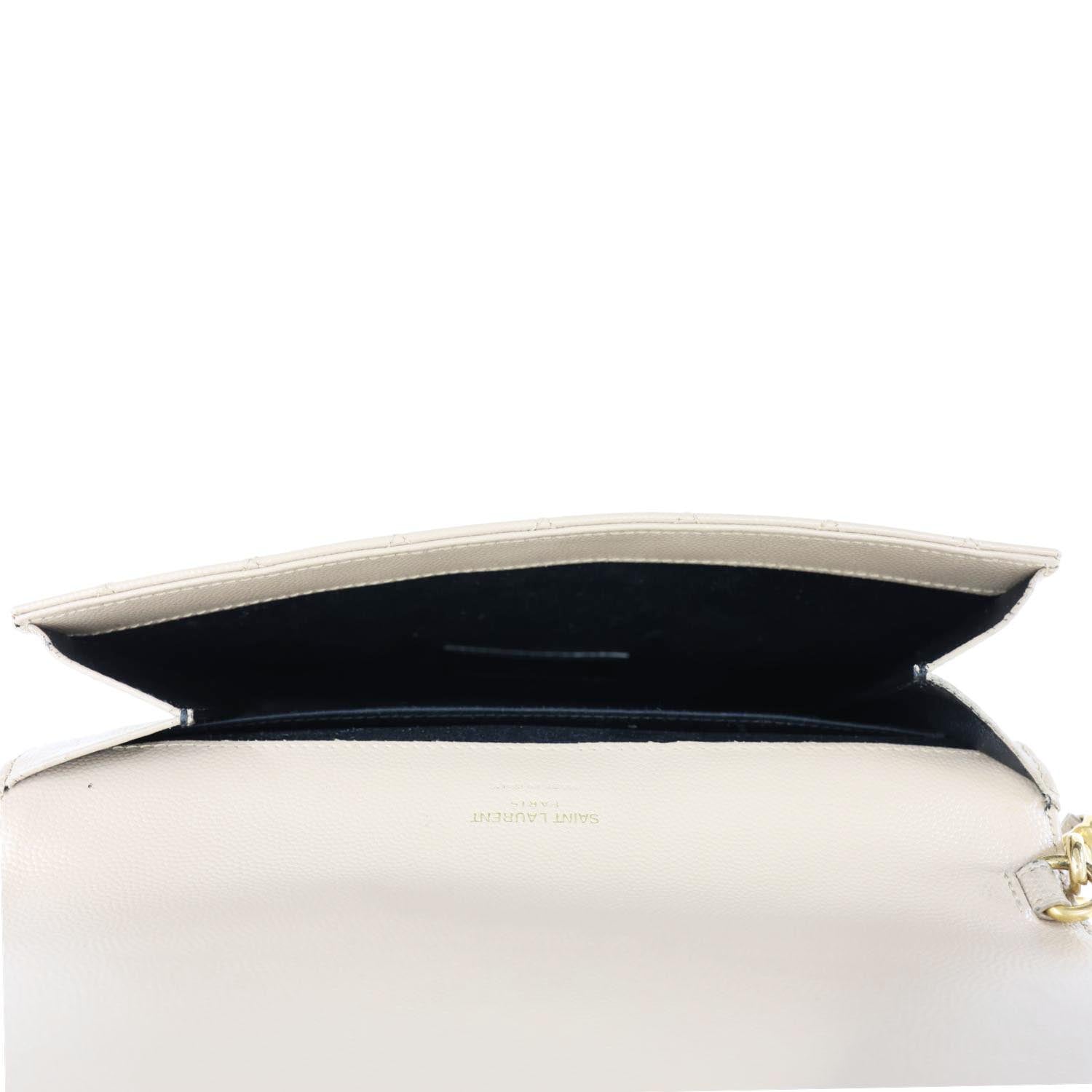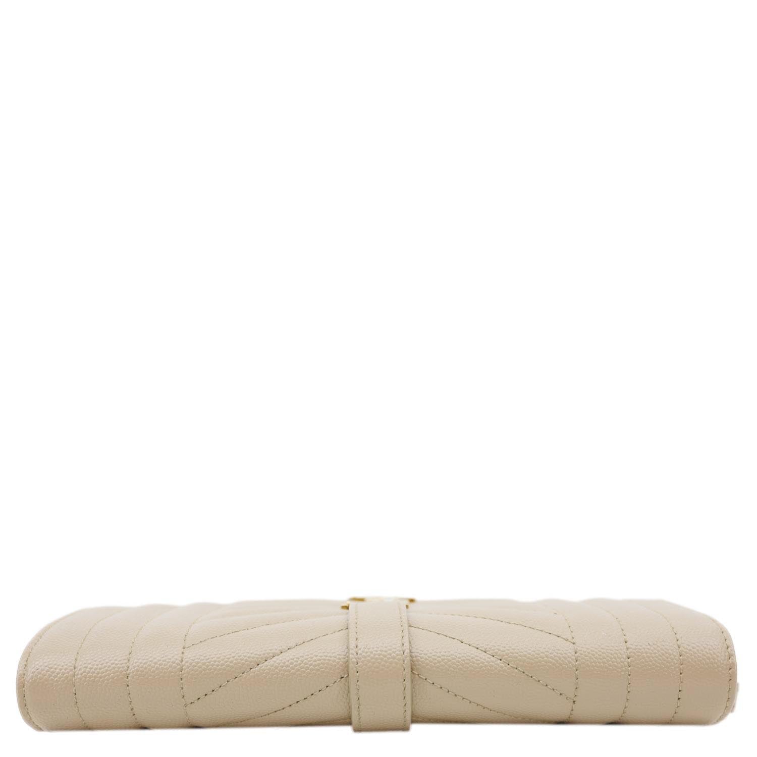 YVES SAINT LAURENT Monogram Envelope Grain De Poudre Leather Clutch Beige
