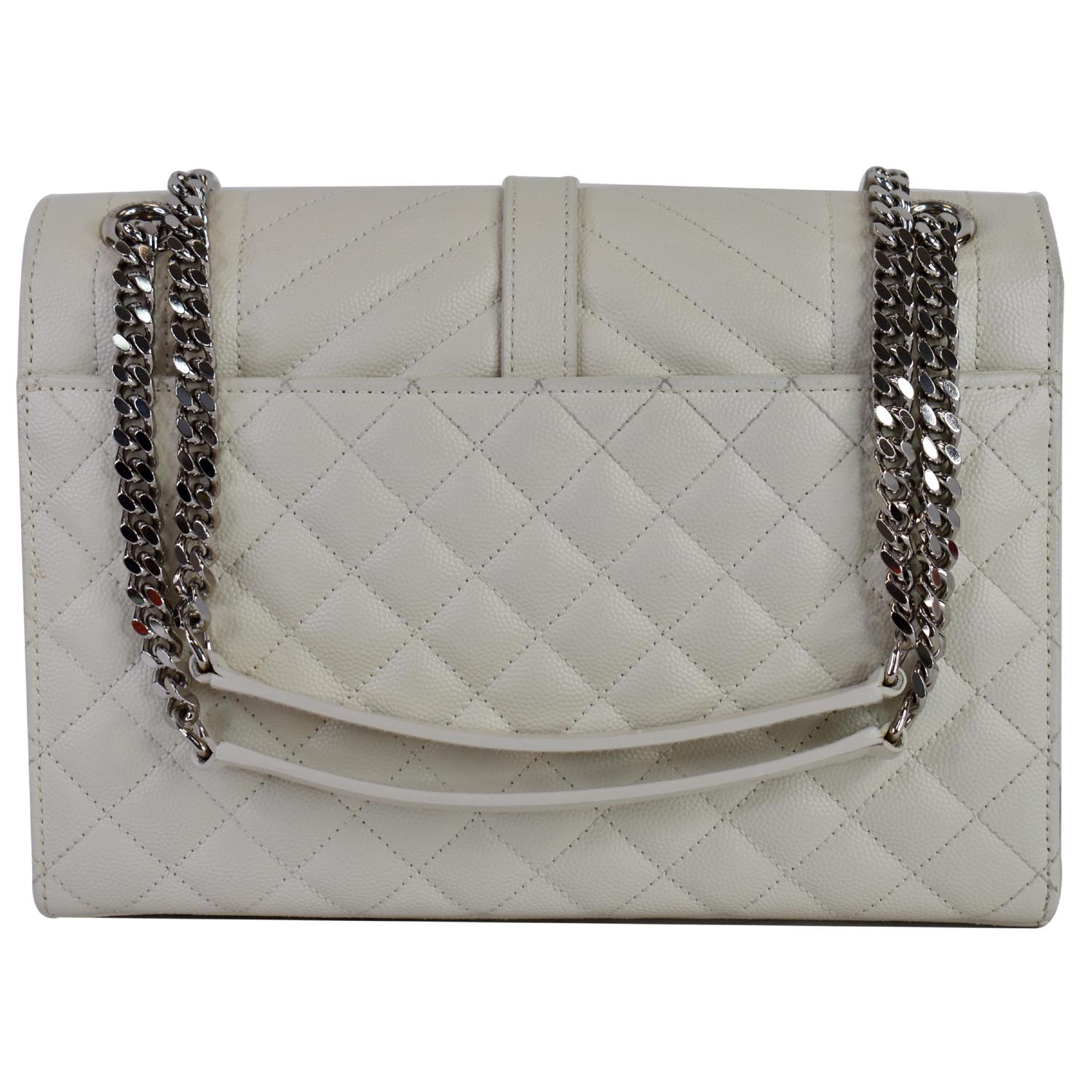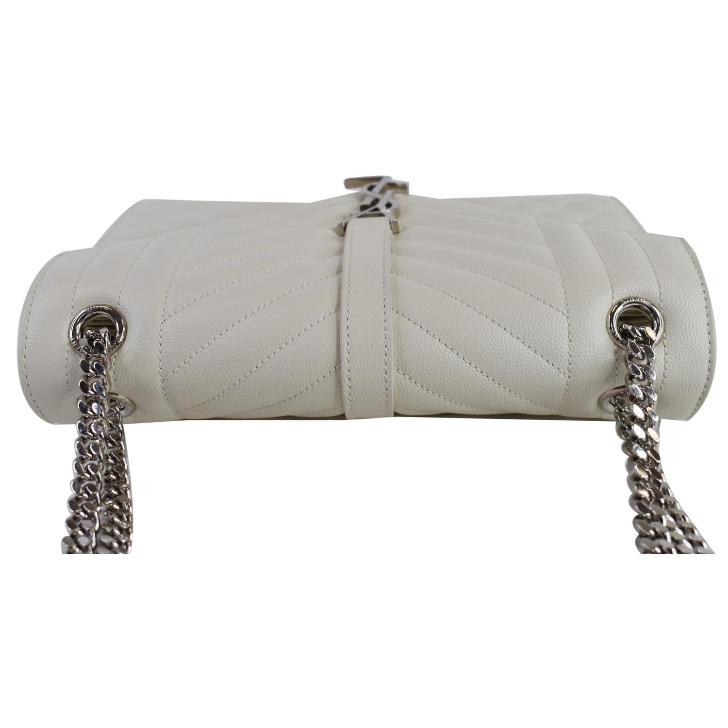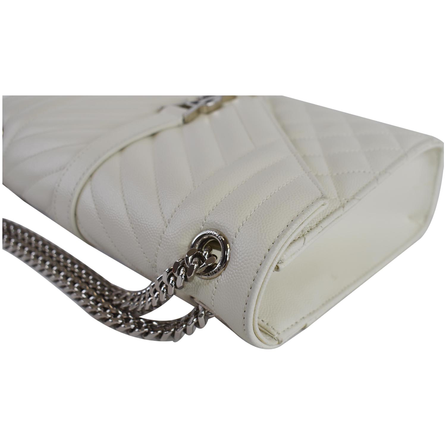 YVES SAINT LAURENT Envelope Medium Chain Leather Shoulder Bag White
