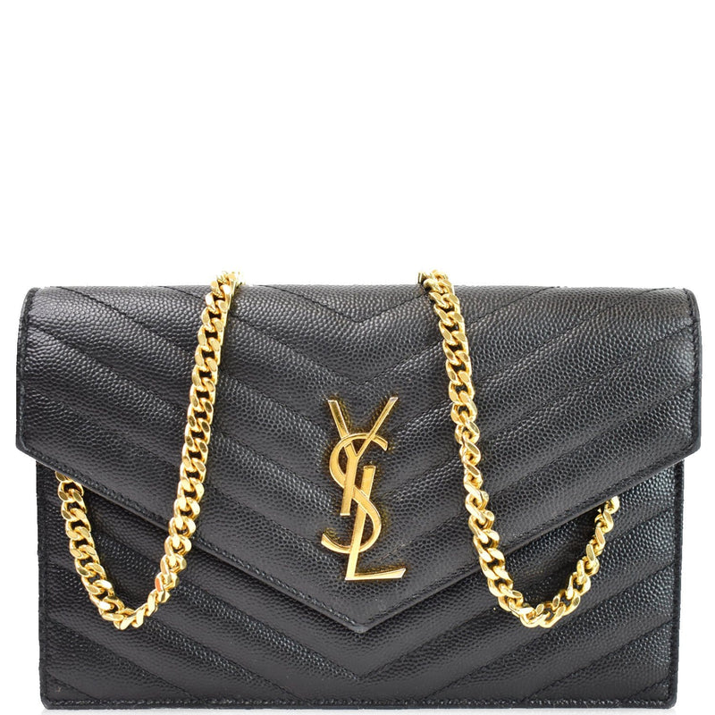 YVES SAINT LAURENT Envelope Monogram Leather Crossbody Chain Wallet Black