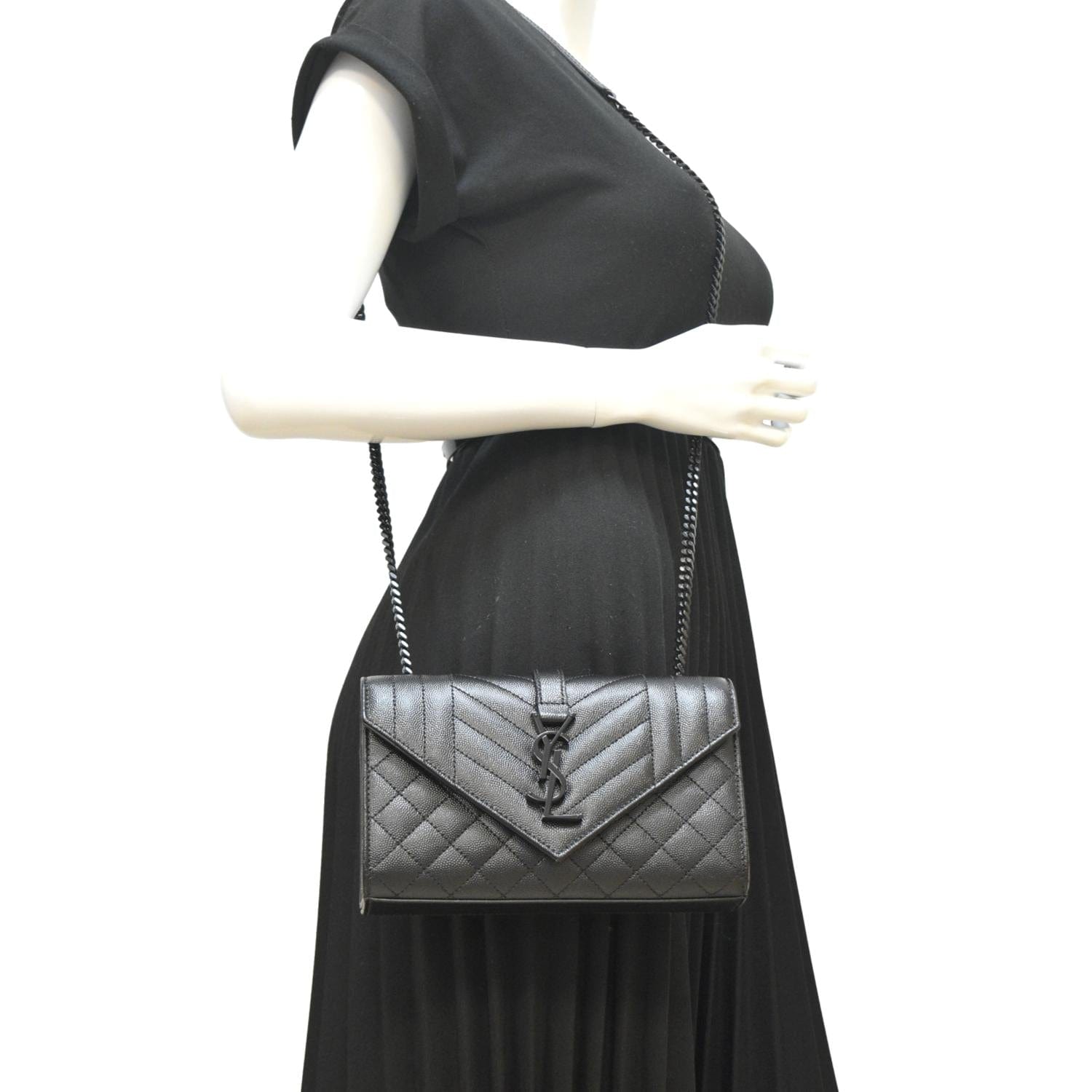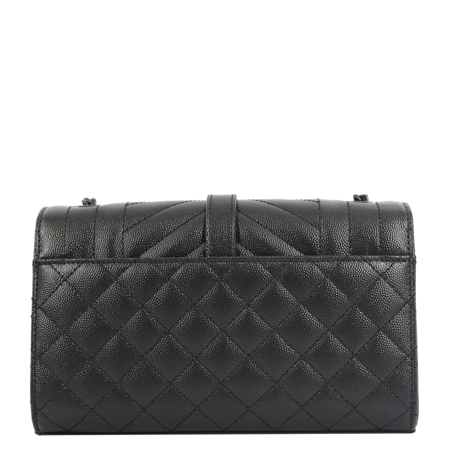 YVES SAINT LAURENT Grain De Poudre Embossed Leather Crossbody Chain Bag Black