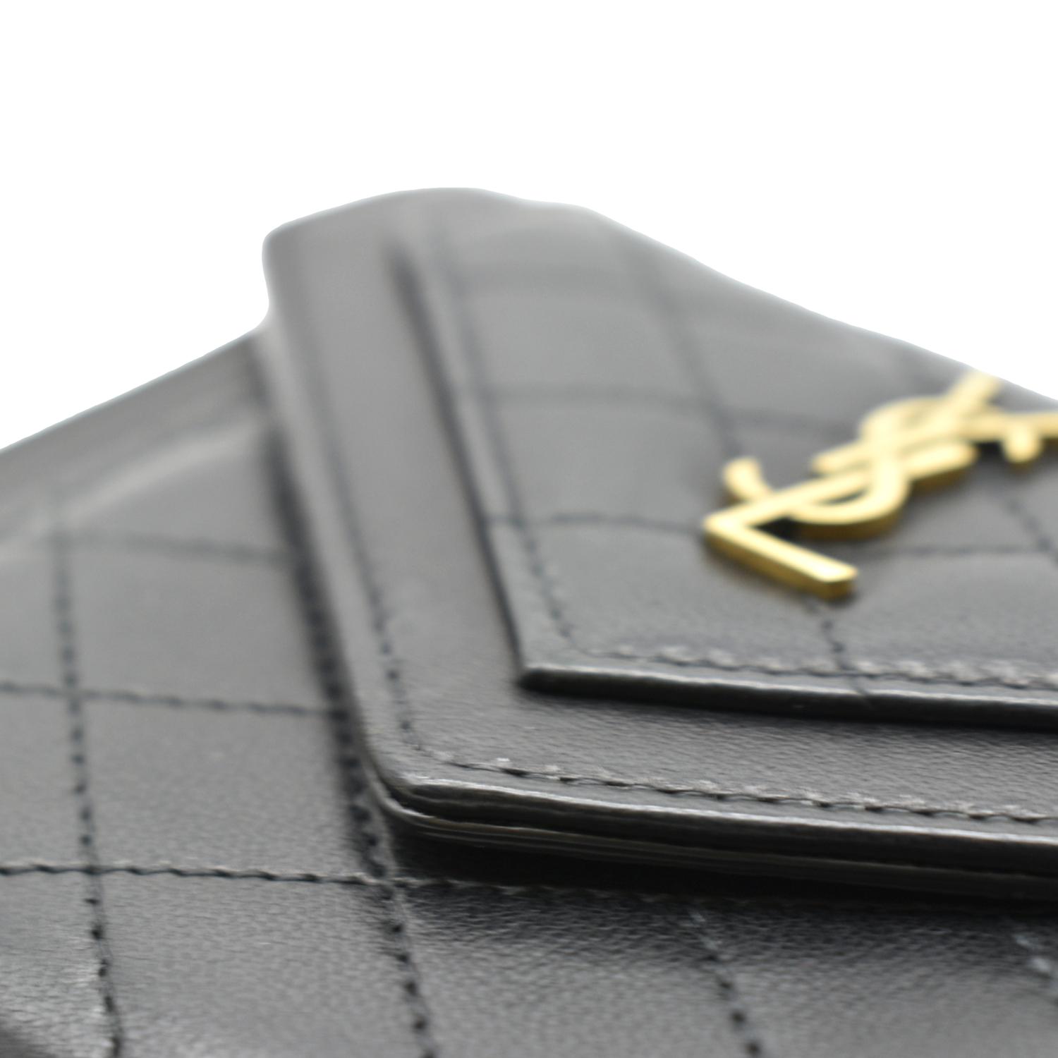 YVES SAINT LAURENT Gaby Compact Tri Fold Small Quilted Leather Wallet Black