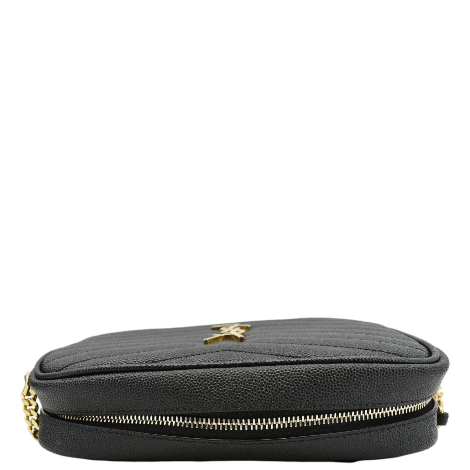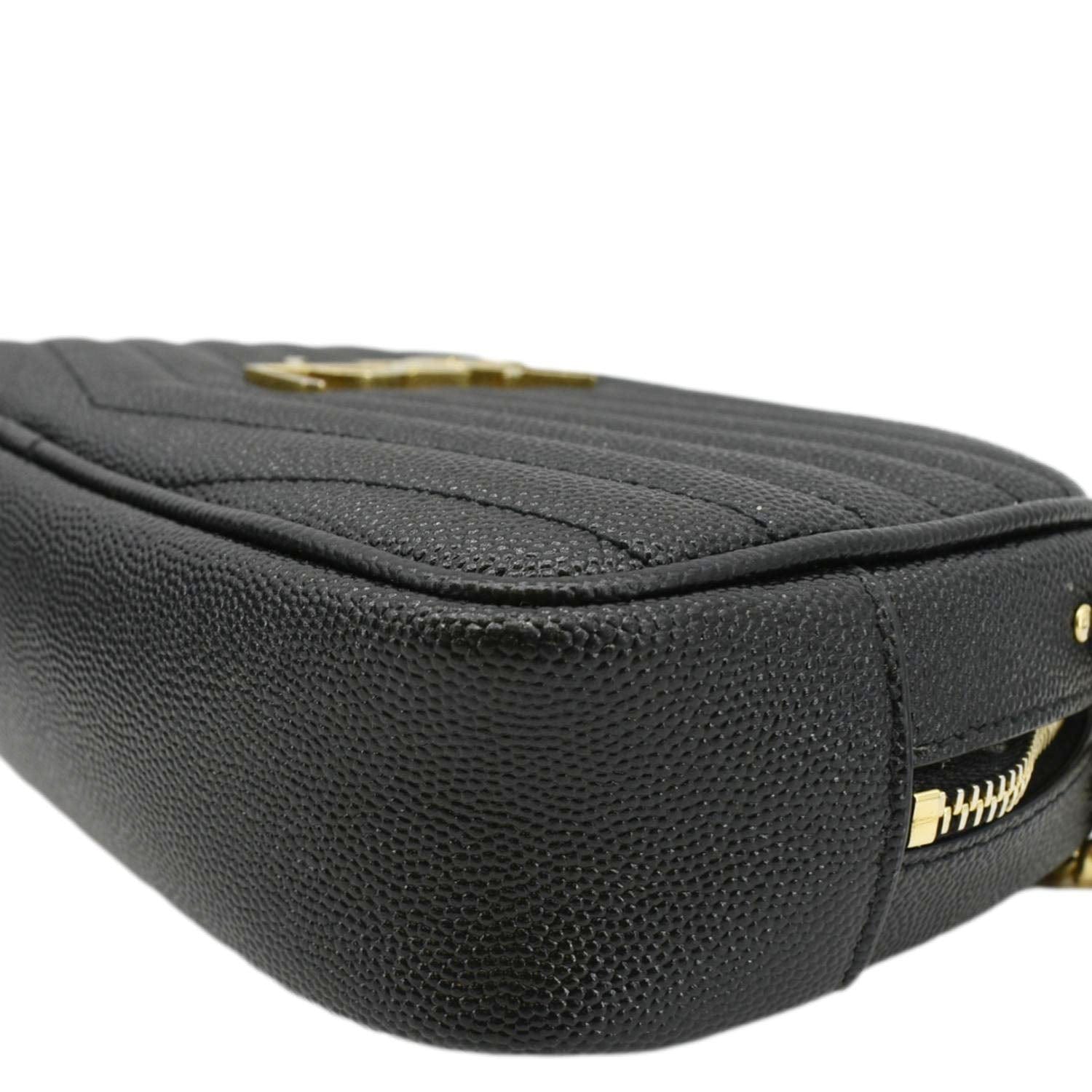 YVES SAINT LAURENT Lou Mini Chevron Leather Camera Crossbody Bag Black