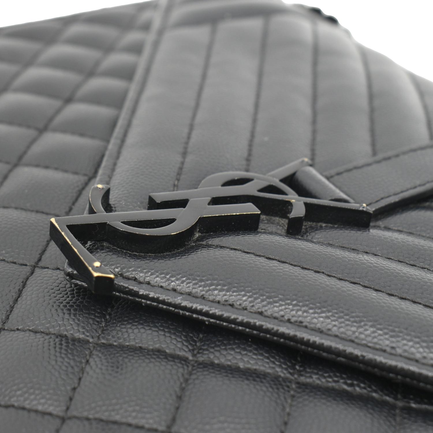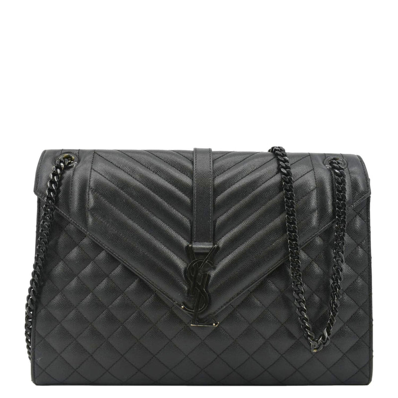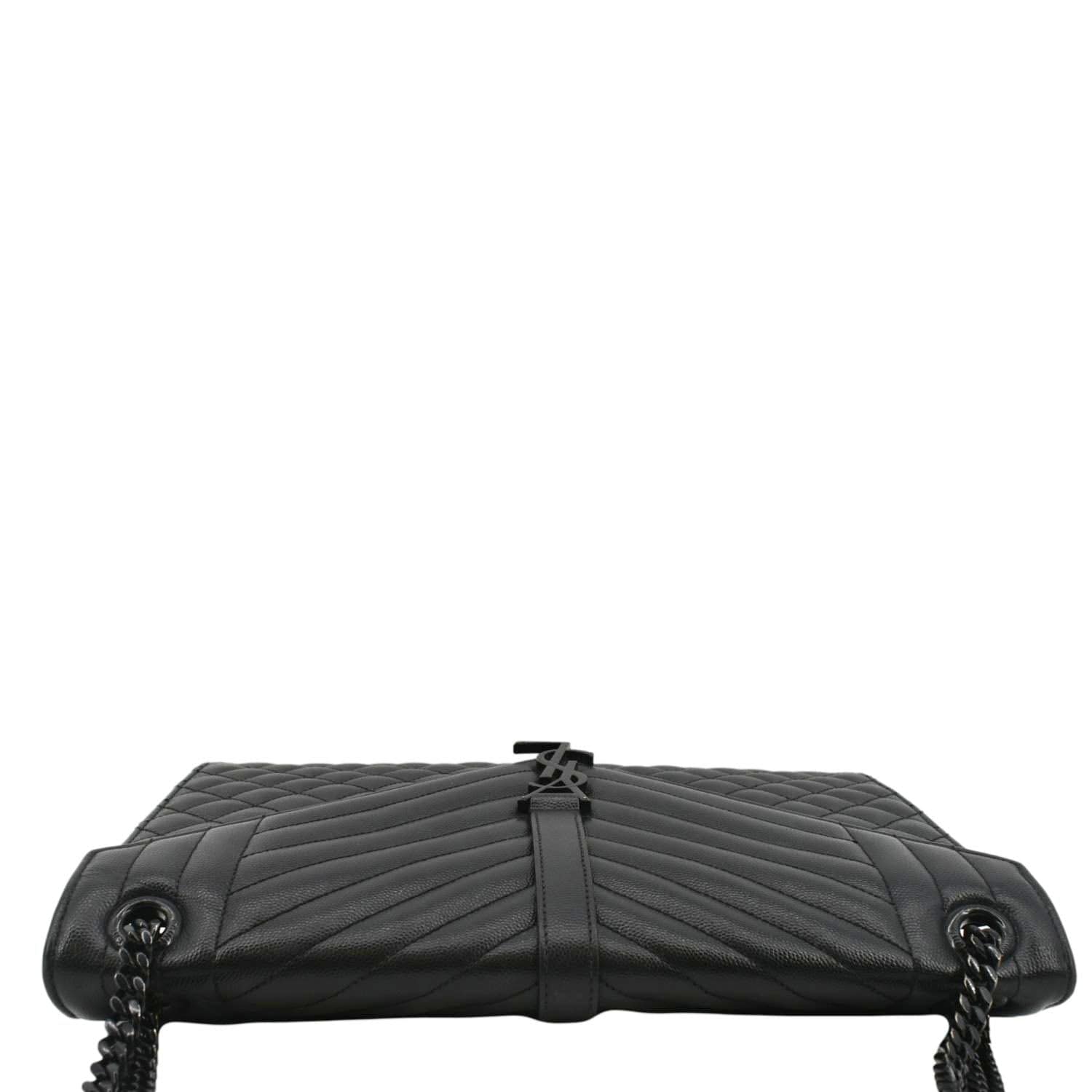 YVES SAINT LAURENT Envelope Mix Matelassé Chain Leather Shoulder Bag Black