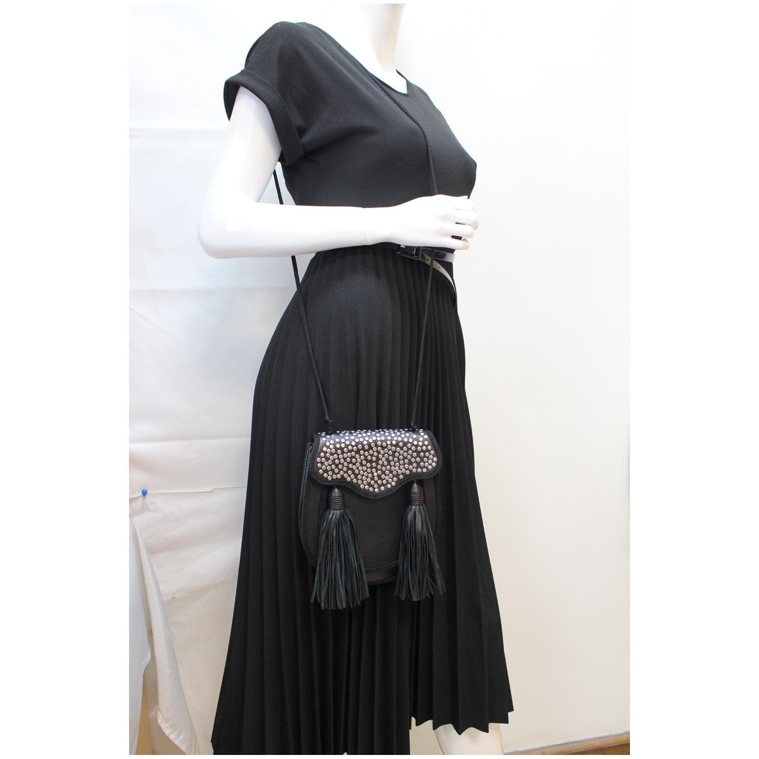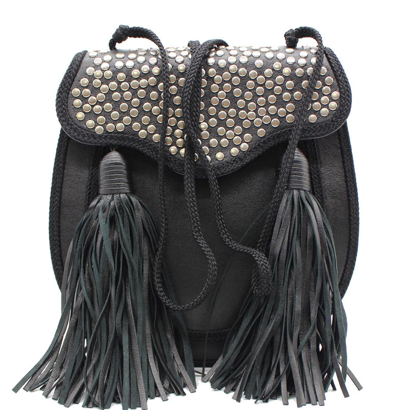 YVES SAINT LAURENT Opium 2 Studded Leather Tassel Bag Black