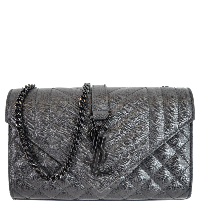 YVES SAINT LAURENT Small Envelope Matelassé Leather Shoulder Bag Black