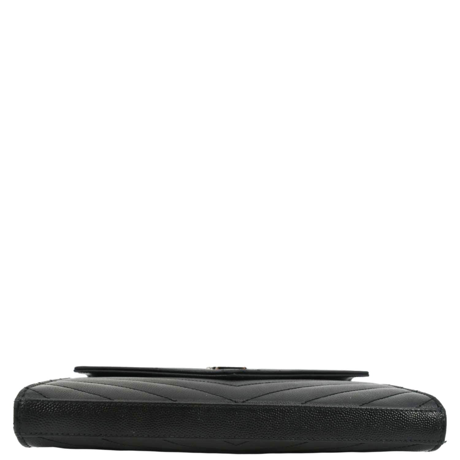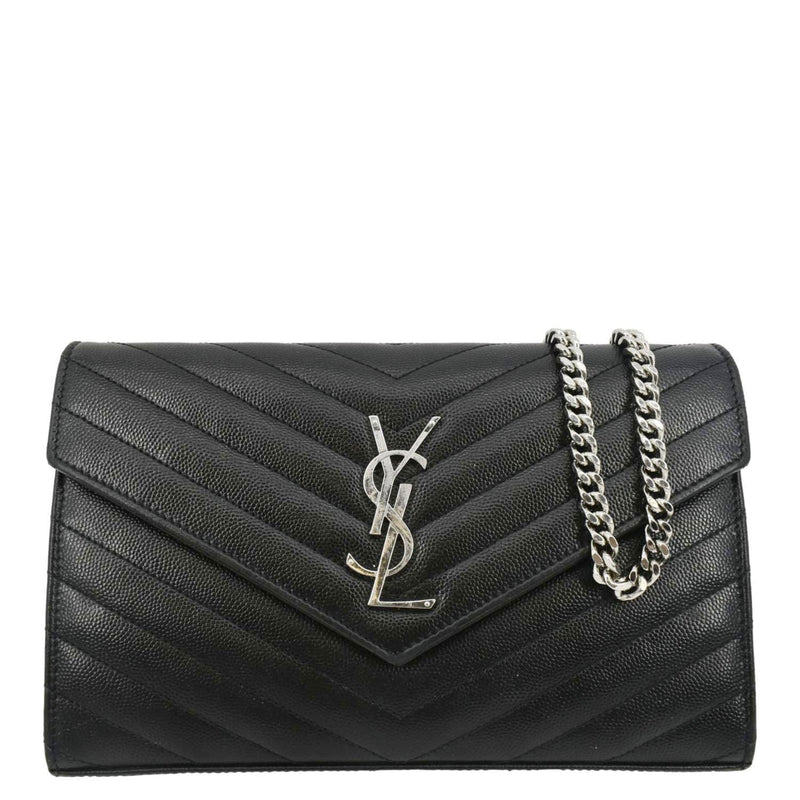Elevate your style with the YVES SAINT LAURENT Wallet Leather Crossbody Bag in Black. This luxury handbag exudes sophistication, featuring premium leather and the iconic YSL monogram emblem. Its versatile design makes it a perfect day-to-night accessory, and the chain strap adds a touch of glam.