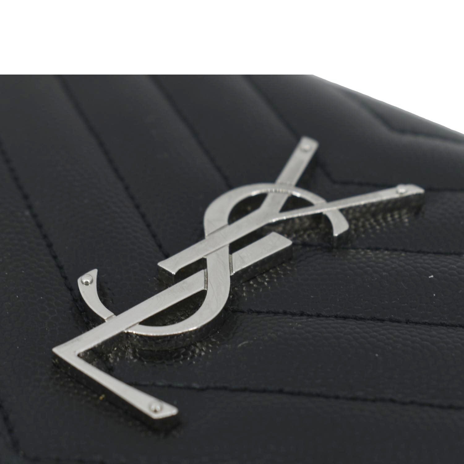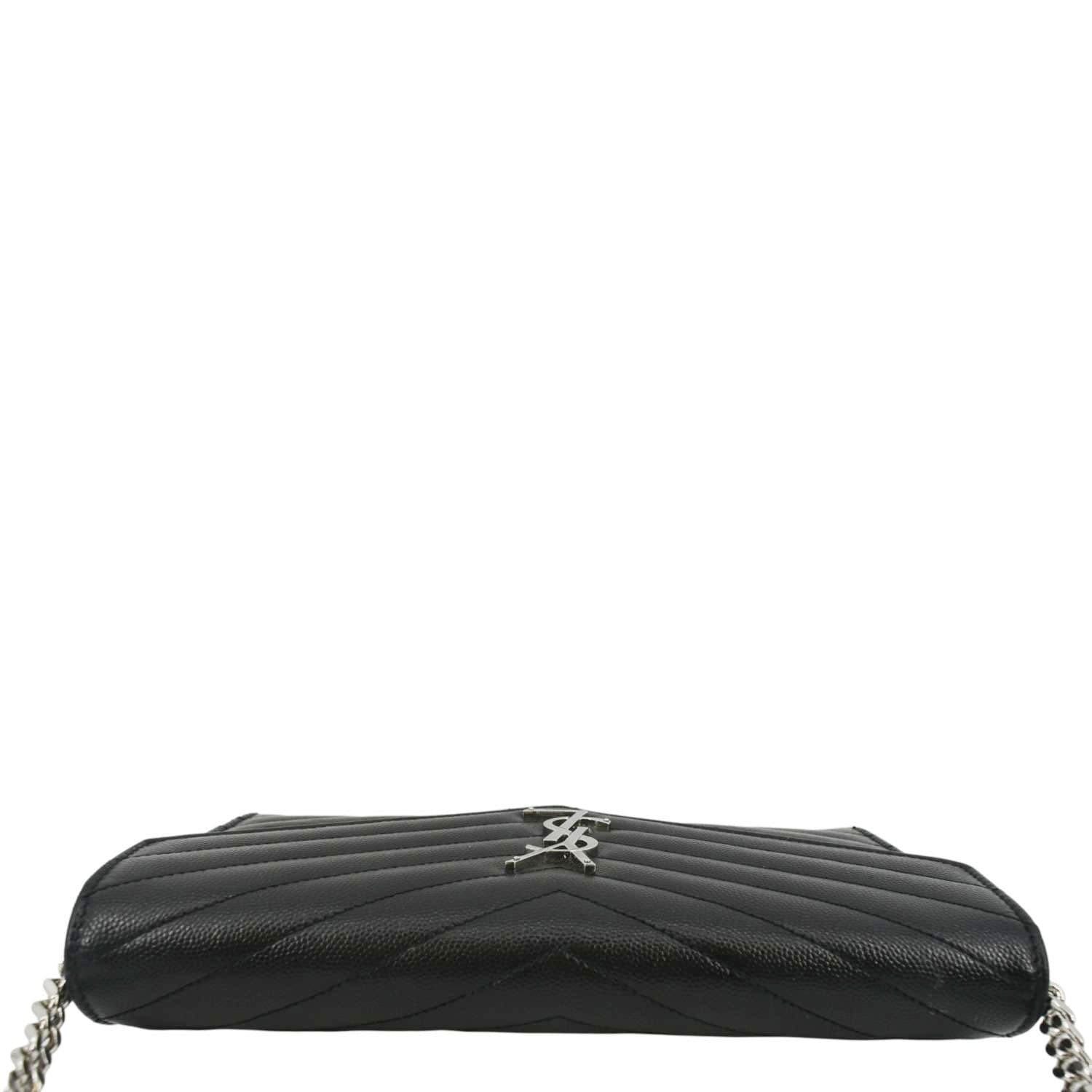 YVES SAINT LAURENT Cassandre Chain Wallet Leather Crossbody Bag Black