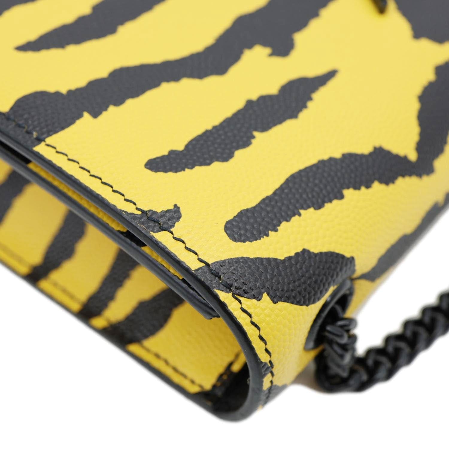 YVES SAINT LAURENT Classic Kate Zebra Print Leather Crossbody Bag Yellow and Black — Bold zebra-print leather with the signature YSL logo hardware defines this striking crossbody. Features a sleek flap design and chain strap for a statement-making finish.