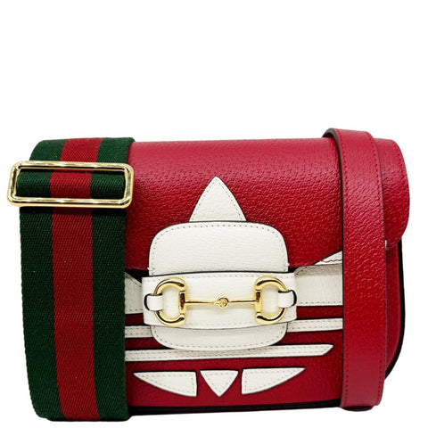 Item Details: A bold collaboration piece blending Gucci’s Horsebit 1955 heritage with Adidas’ sporty edge in vibrant red...