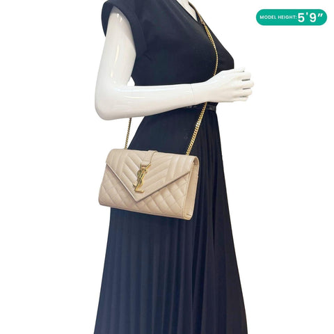 Item Details: YSL’s Envelope Flap Medium in burgundy features sleek Grain de Poudre leather with the signature chevron...