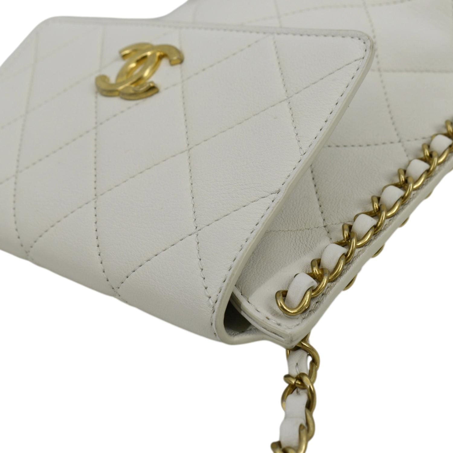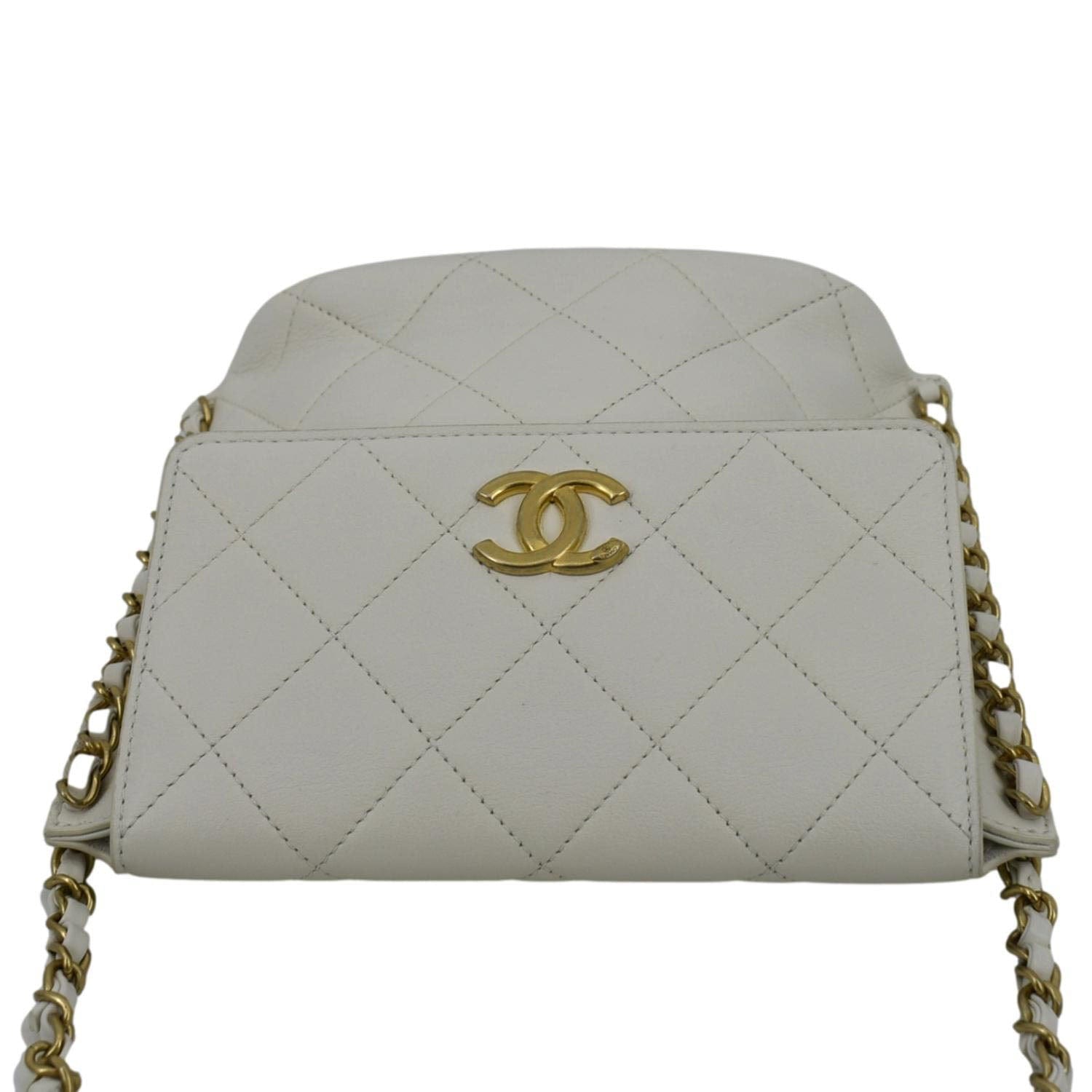 CHANEL Chain Flap Quilted Leather Hobo Shoulder Bag Ivory