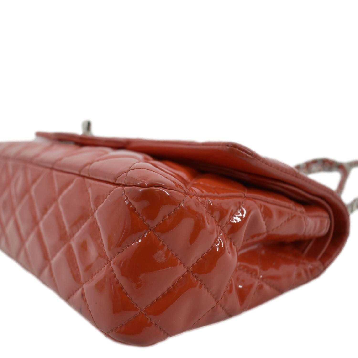 CHANEL Classic Double Flap Quilted Patent Leather Shoulder Bag Red