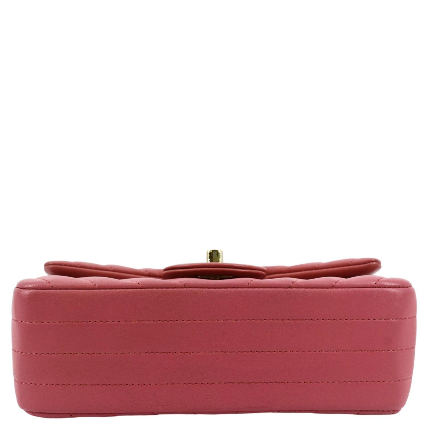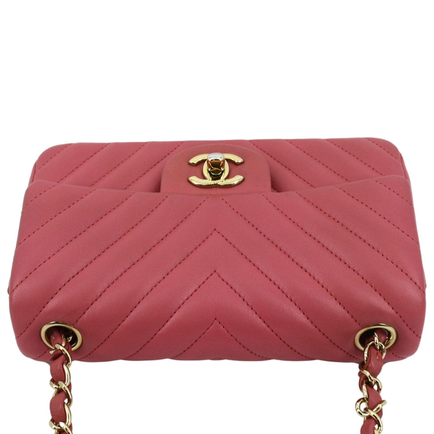 CHANEL Timeless Classic Square Flap Chevron Calfskin Leather Crossbody Bag Pink